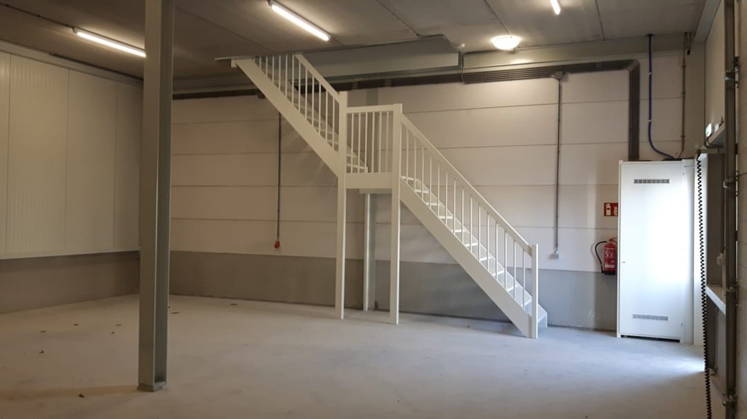 - Mechanische ventilatie, overheaddeuren, krachtstroom, betonvloer, toilet, pantry, airconditioning, inbouwarmaturen en te openen ramen