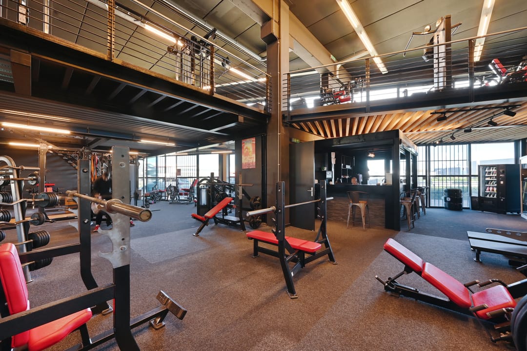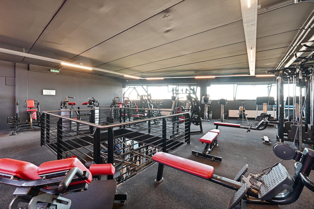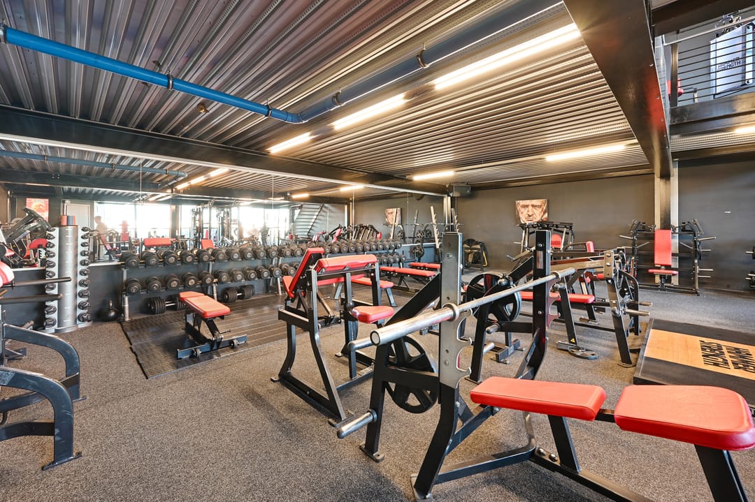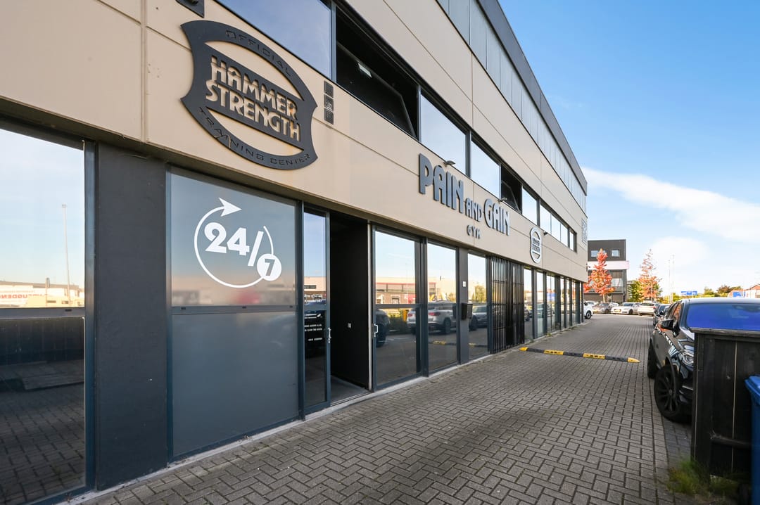 Het pand is toegankelijk via de centrale voordeur, daarnaast zijn er twee schuifpuien aanwezig die als extra of onafhankelijke entree gebruikt kunnen worden. De entree is voorzien van hal, toiletruimte en technische ruimte. Vanuit hier bereikt u de centrale ontvangstruimte met een gezellige koffiecorner en verlaagd plafond. De begane grond heeft een oppervlakte van circa 260 m² en is momenteel ingericht als sportschool met fitnesstoestellen, maar geschikt voor vele doeleinden. De voorzijde heeft brede raampartijen die veel licht binnenlaten, en vanaf de vides op de eerste verdieping is er op meerdere plaatsen zicht op de begane grond, wat bijdraagt aan een ruimtelijk en open karakter.