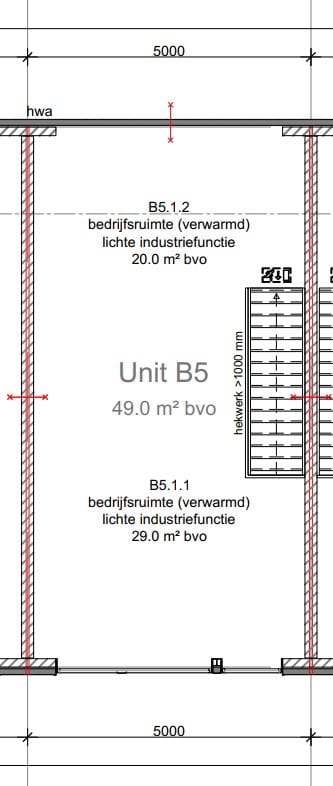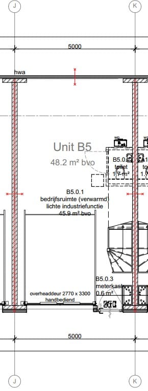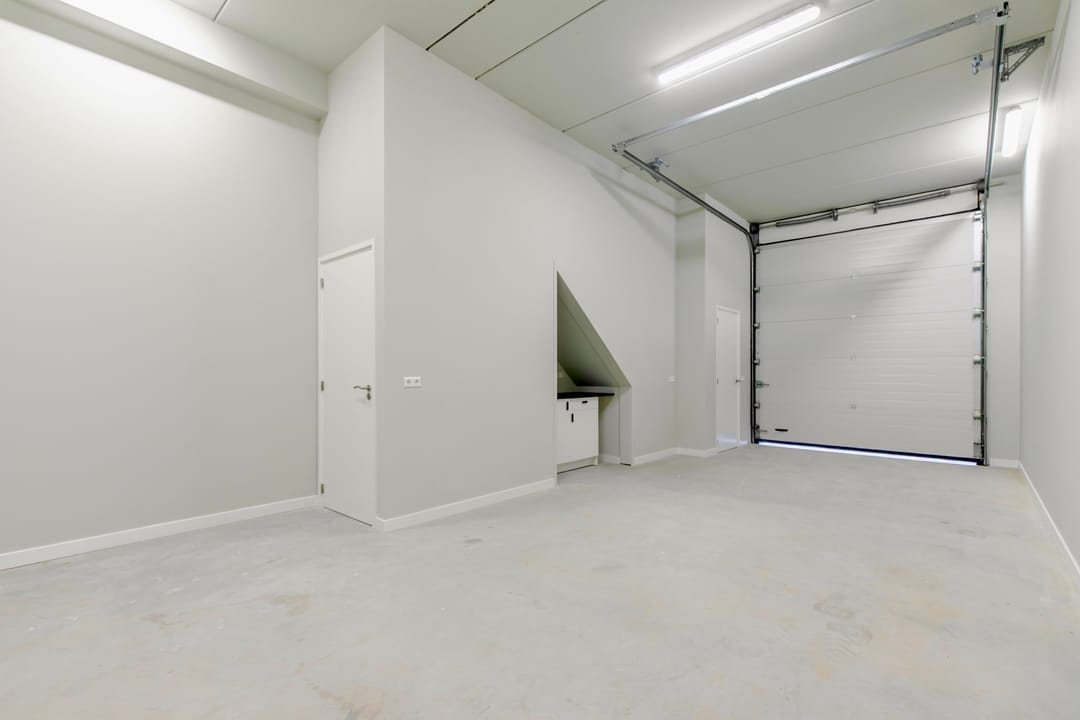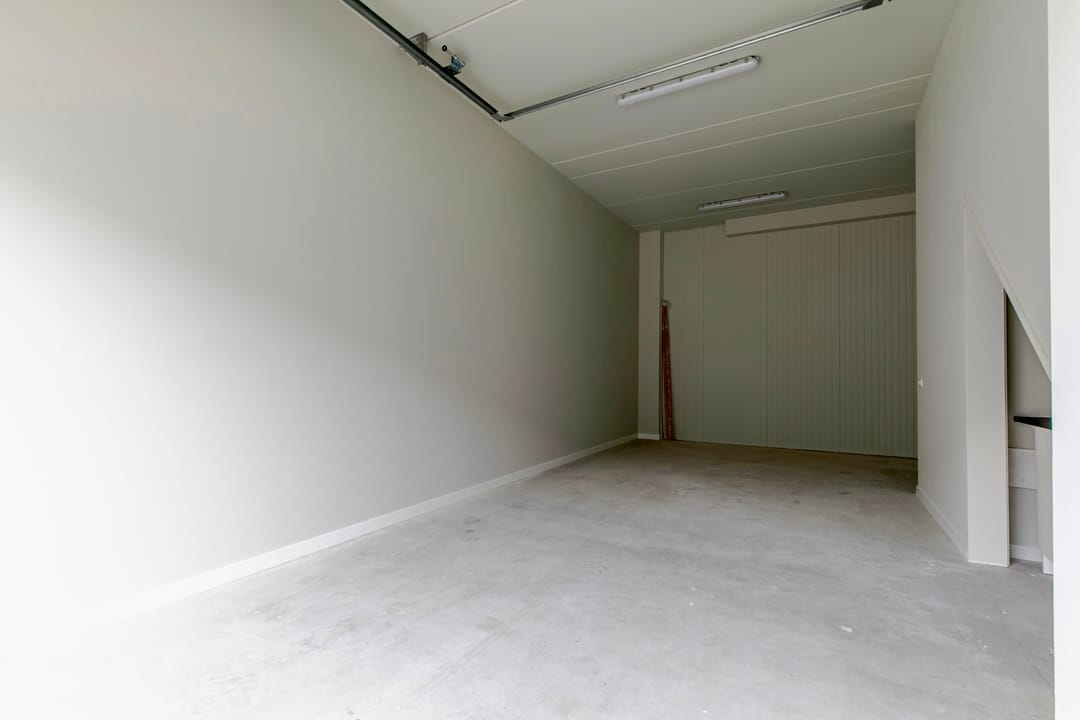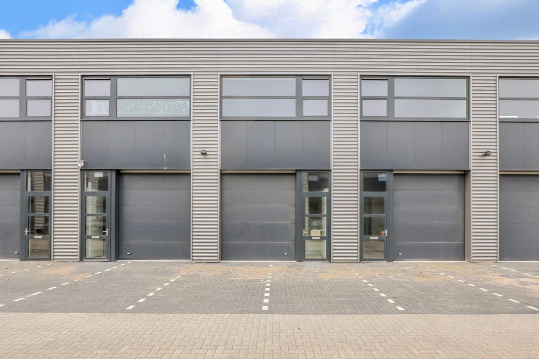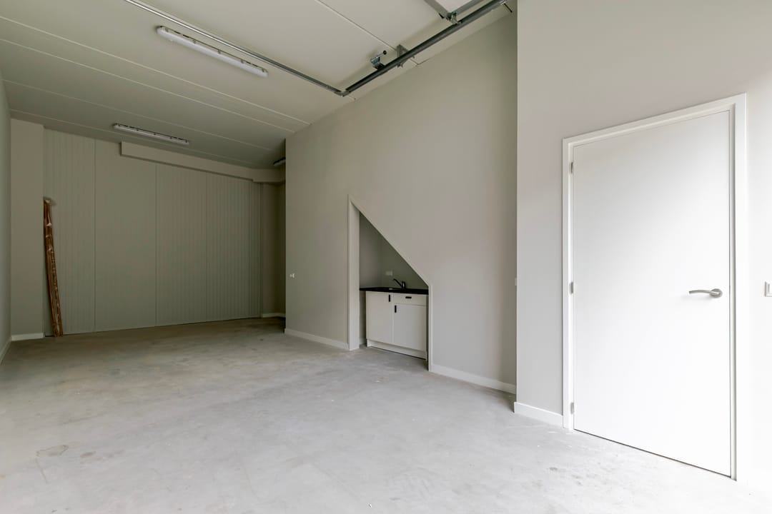 - Overheaddeuren, krachtstroom, betonvloer, toilet, pantry, airconditioning, inbouwarmaturen en te openen ramen