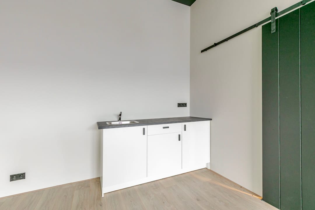 - keukenblokje onder de trap met gootsteen en kraan