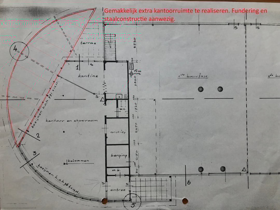 De kantoorruimte aan de tuinzijde is ten tijden van de bouw in 1996 niet geheel afgebouwd, echter de fundering en staalconstructie zijn wel al gerealiseerd. Waardoor u met een kleine bouwkundige ingreep circa 40 m2 extra kantoorruimte kunt realiseren.