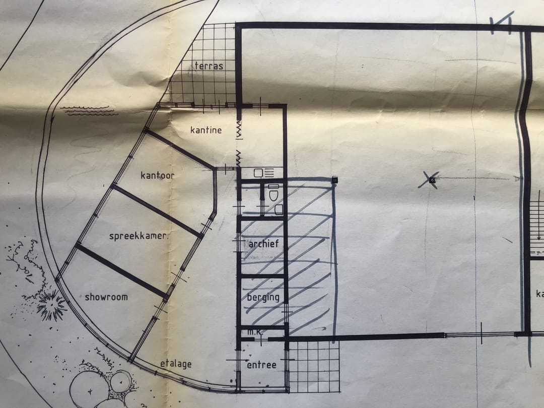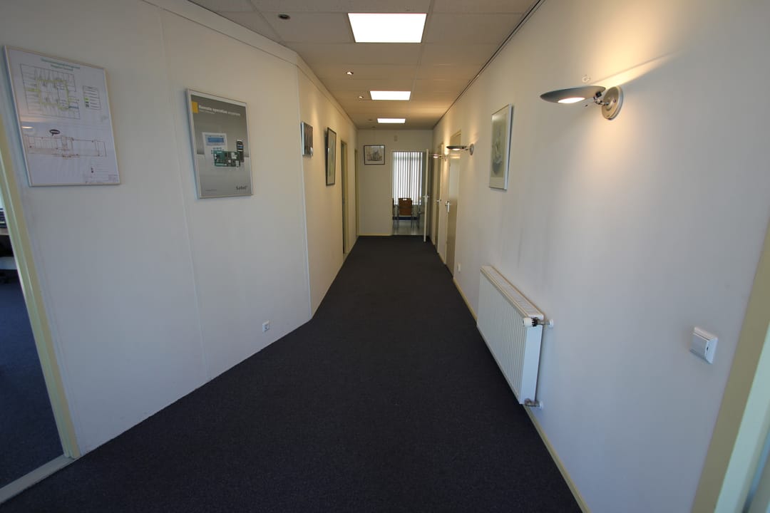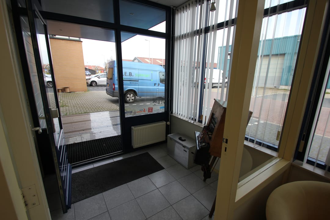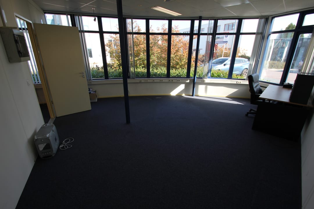 Het kantoorgedeelte heeft eigen entree en vier ruimten; een showroom, spreekkamer, kantine en kantoor. De binnenwanden zijn naar eigen smaak aan te passen. Door de grote ronde raampartij is het een prettige en lichte werkomgeving.