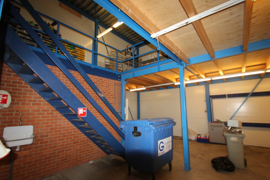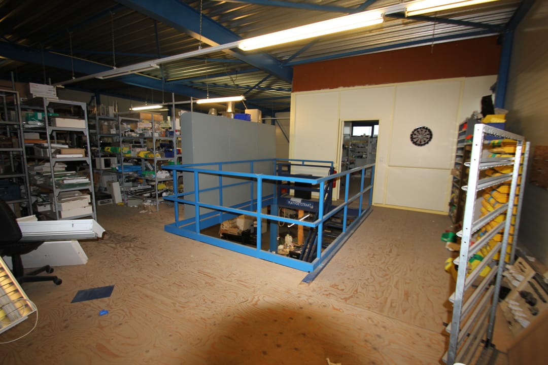 Achterin de bedrijfsruimte is een houtenverdiepingsvloer ingebouwd, het totale vloeroppervlak hiervan is 65 m2.