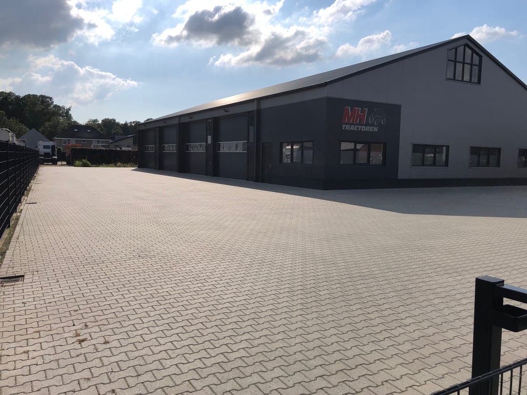 - Brede strook bestrating (ca. 12 meter) voor de unit aanwezig (niet bedoeld voor opslag).