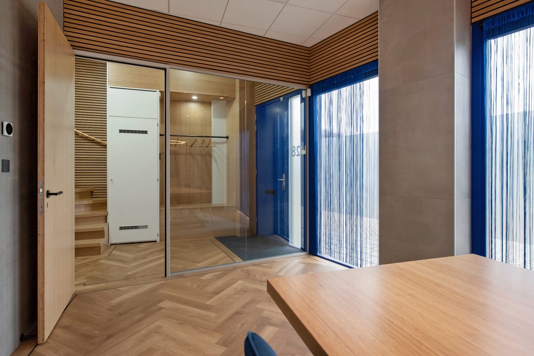 - glazen wanden;