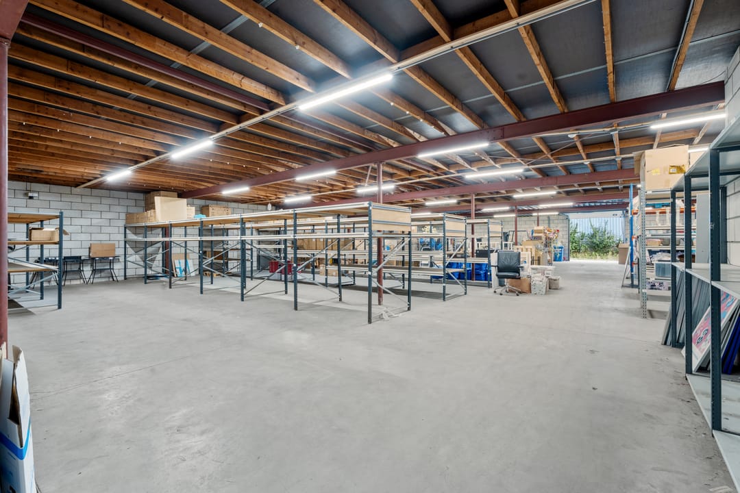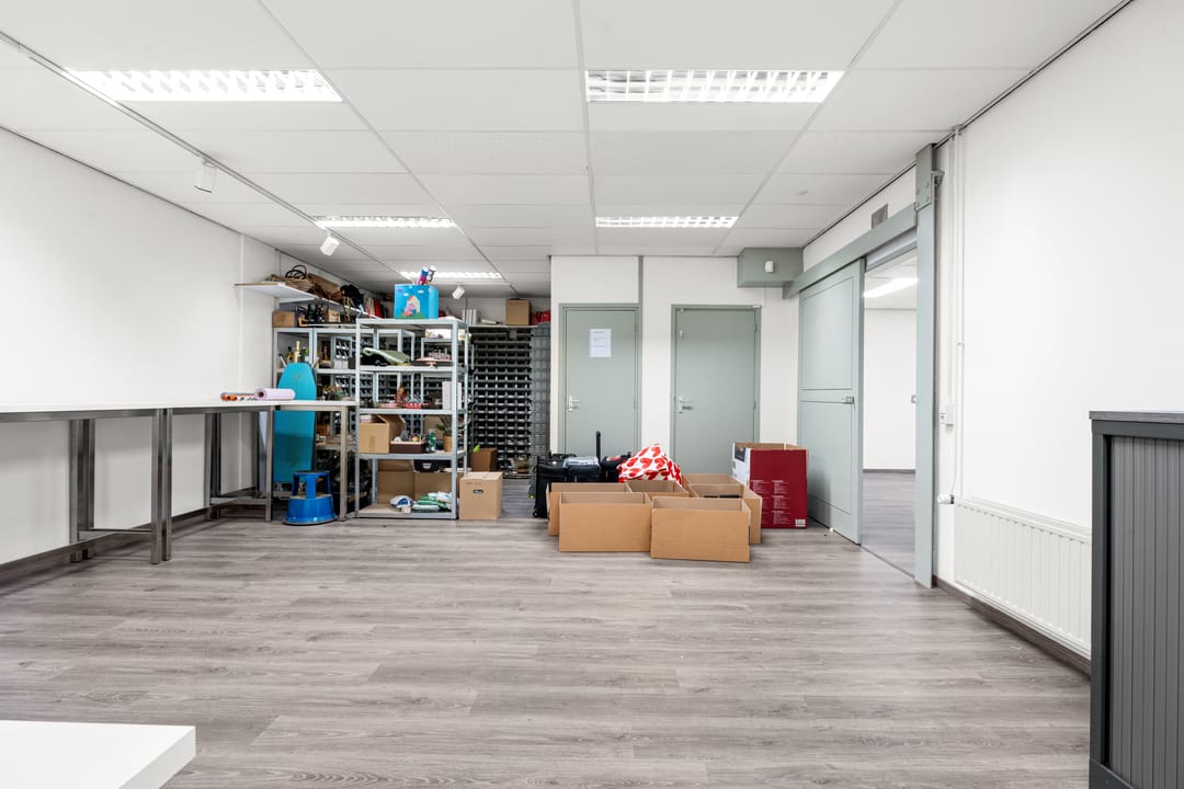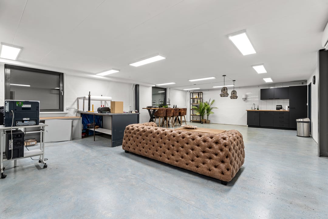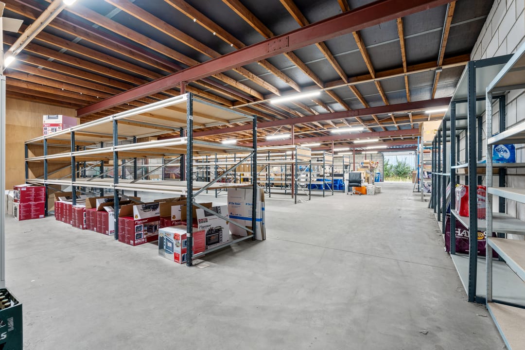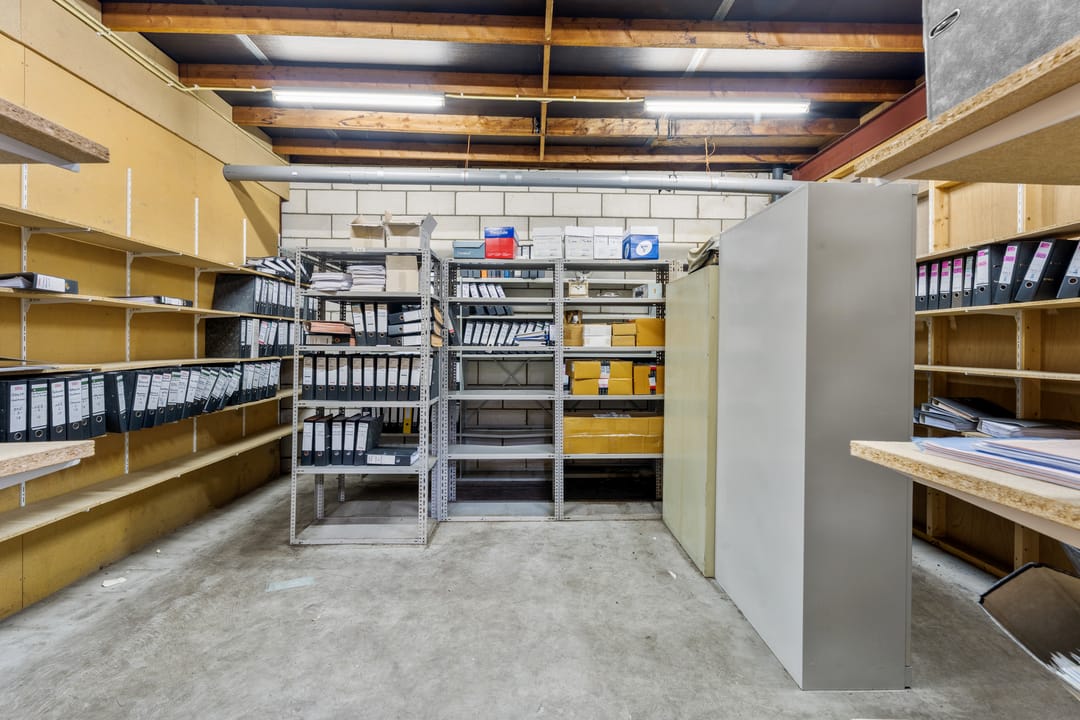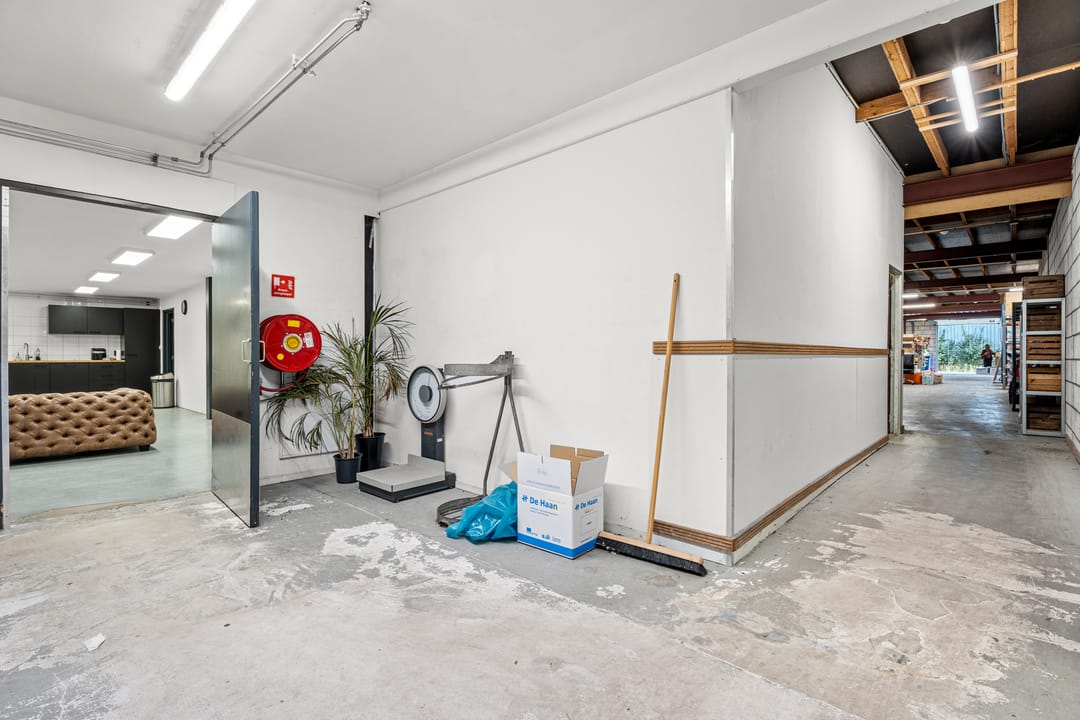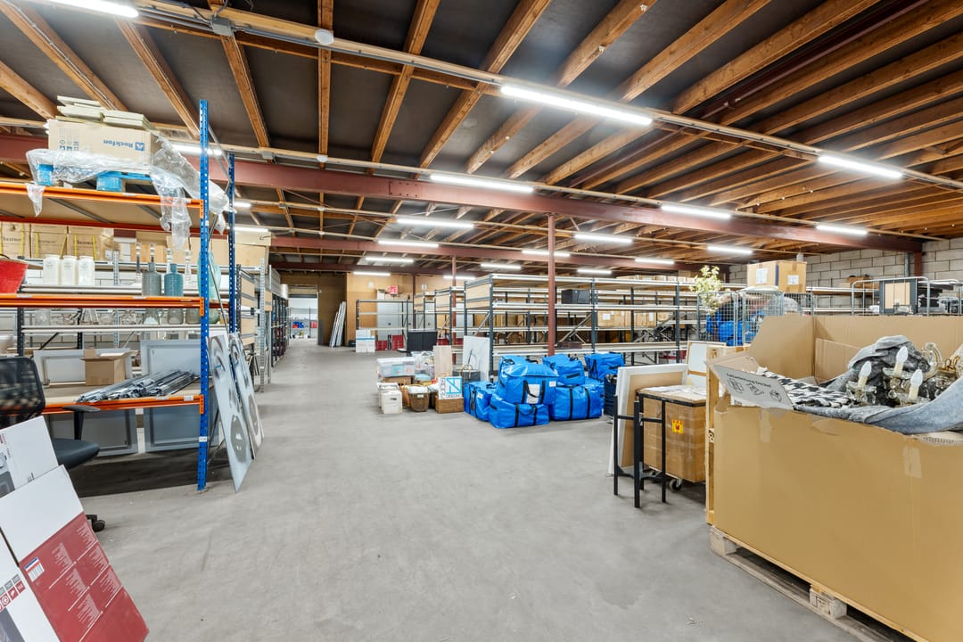 Dit resulteert in een verhuurbaar vloeroppervlak van circa 1.917 m². De bouwkundige opzet is efficiënt en degelijk. De bedrijfsruimte heeft een vrije hoogte van 3.7 meter en is voorzien van een betonnen vloer met hoge draagkracht, een overheaddeur en diverse stellingen. Het object is geschikt voor opslag, werkplaatsfuncties of lichte productie. De kantoorruimte is representatief afgewerkt en beschikt over voldoende daglichttoetreding, indelingsopties en voorzieningen voor personeel en ontvangst.