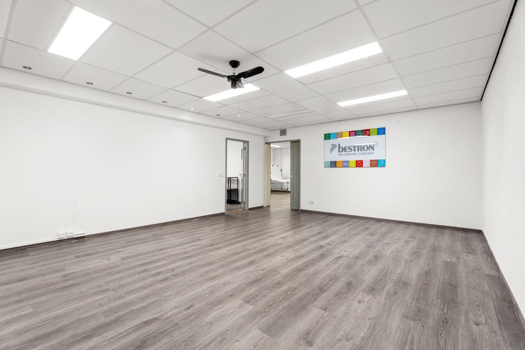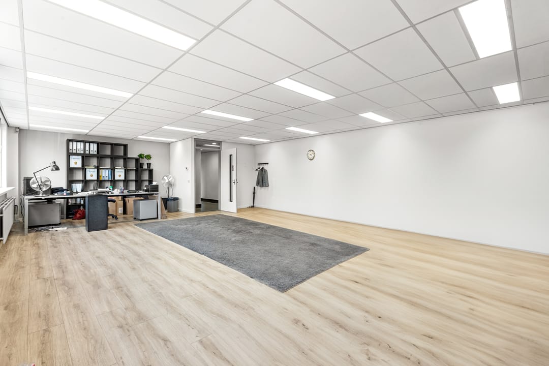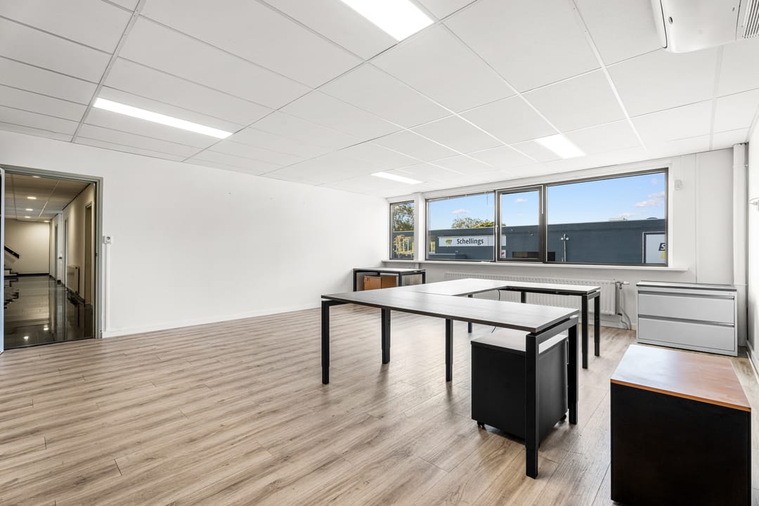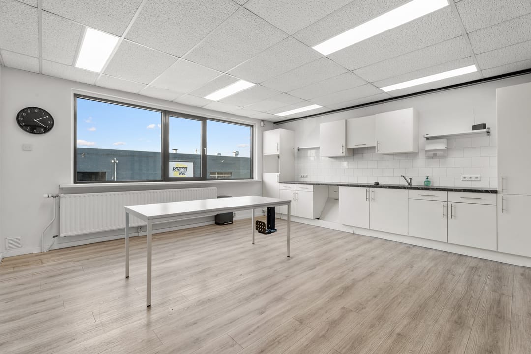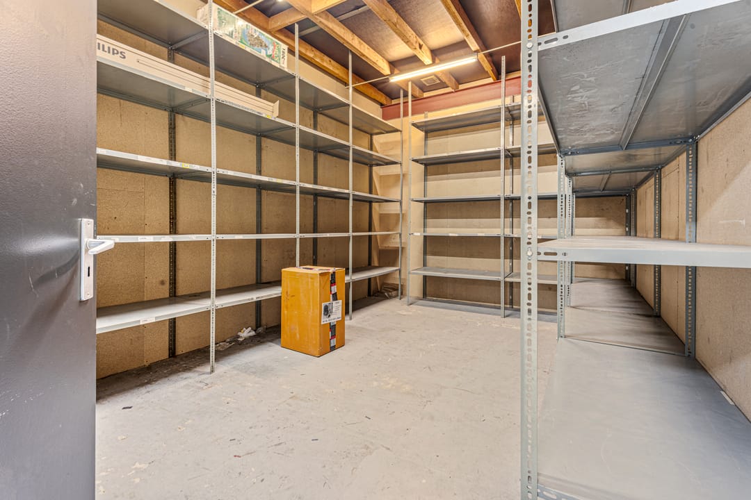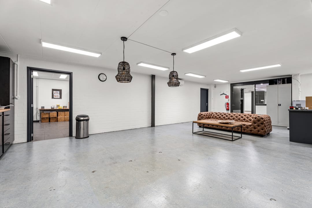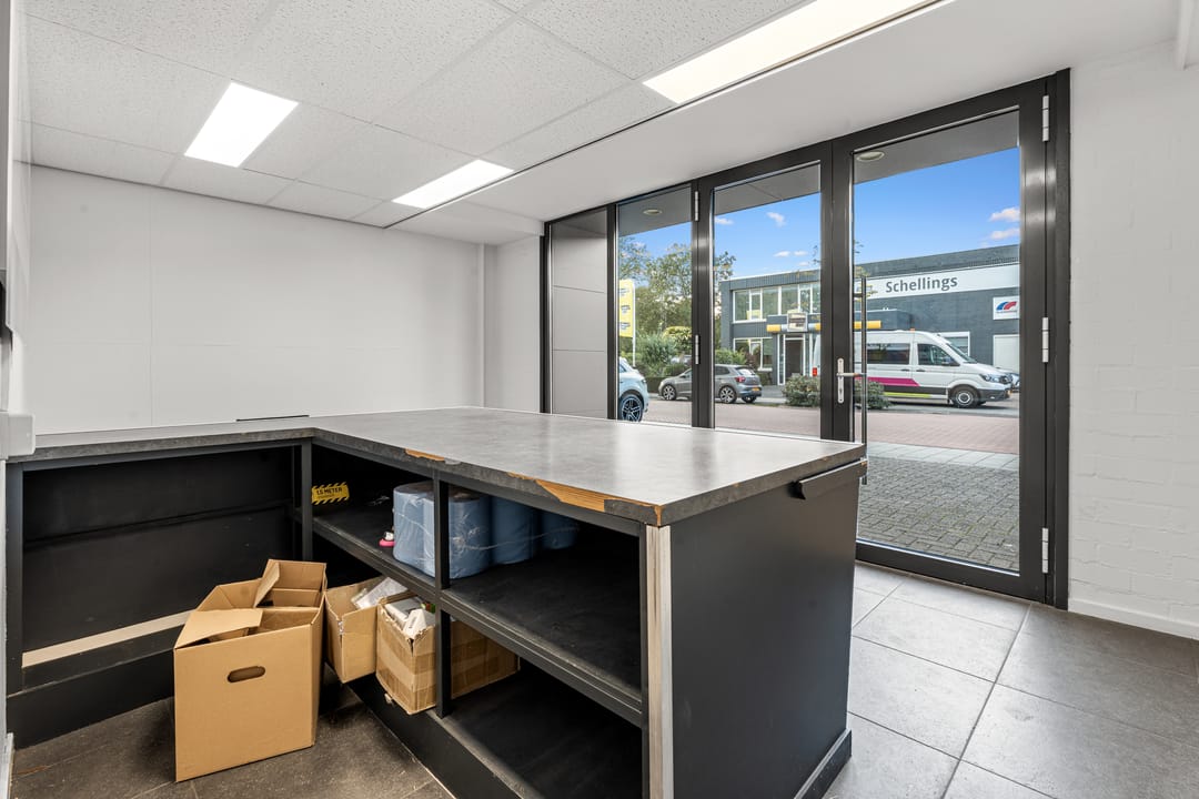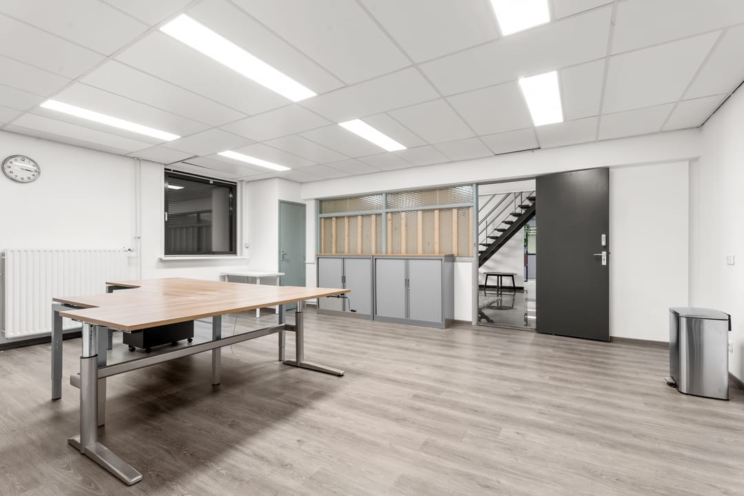 Dit resulteert in een verhuurbaar vloeroppervlak van circa 1.917 m². De bouwkundige opzet is efficiënt en degelijk. De bedrijfsruimte heeft een vrije hoogte van 3.7 meter en is voorzien van een betonnen vloer met hoge draagkracht, een overheaddeur en diverse stellingen. Het object is geschikt voor opslag, werkplaatsfuncties of lichte productie. De kantoorruimte is representatief afgewerkt en beschikt over voldoende daglichttoetreding, indelingsopties en voorzieningen voor personeel en ontvangst.