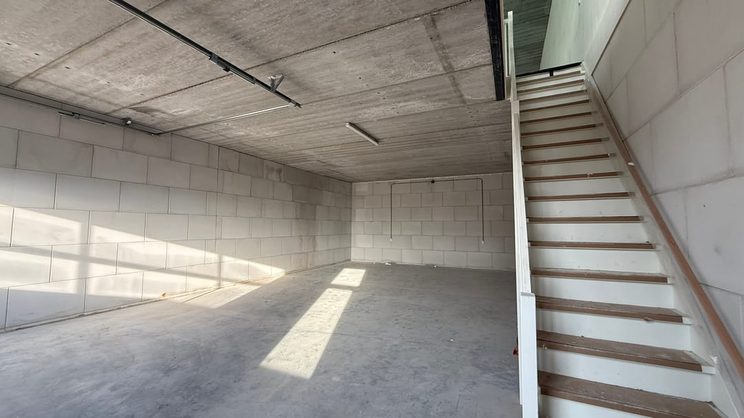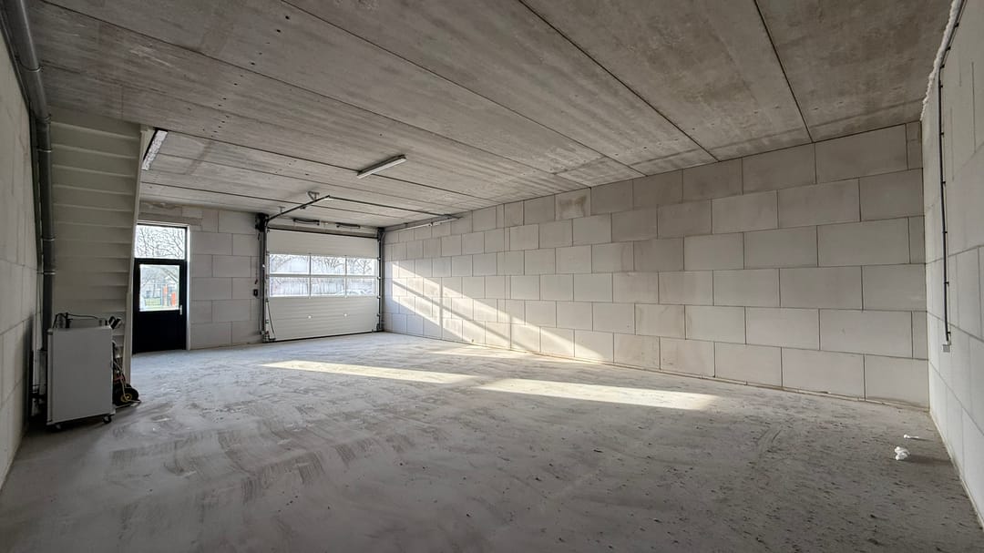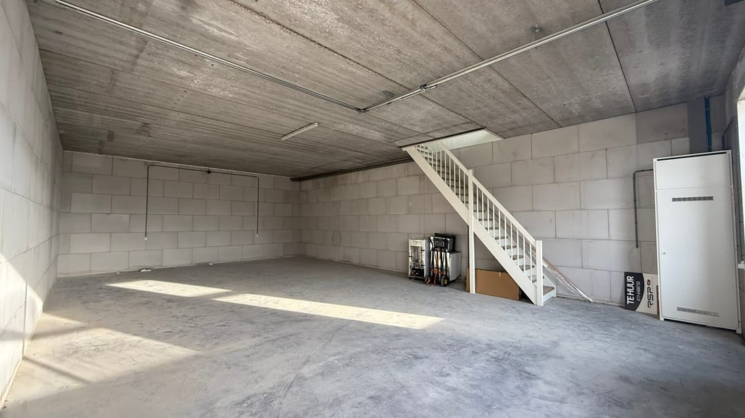 - Airconditioning, overheaddeuren, krachtstroom, betonvloer, toilet, pantry, inbouwarmaturen en te openen ramen