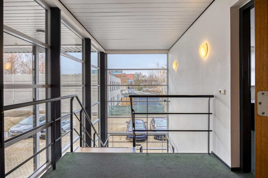 Het betreft circa 876 m² kantoorruimte waarvan circa 504 m² gelegen op de begane grond en circa 372 m² gelegen op de verdieping.