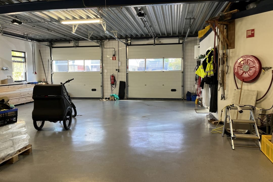 De bedrijfshal bestaat uit 3 ruimten van totaal ruim 200 m² én een kantoorruimte. De grootste ruimte is voorzien van 2 elektrisch bedienbare overheaddeuren. Via de centrale binnenhal is tevens het woonhuis te bereiken.