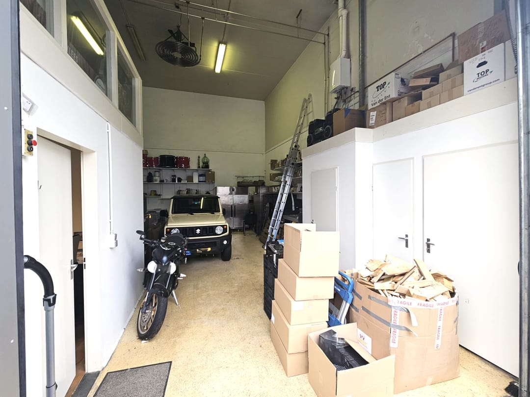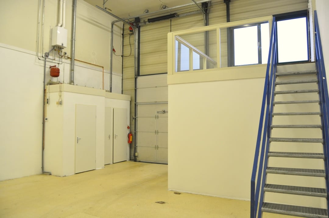 - Lichtstraten, overheaddeuren, krachtstroom, betonvloer, toilet, inbouwarmaturen en te openen ramen