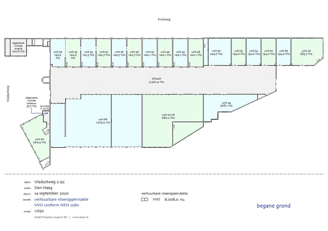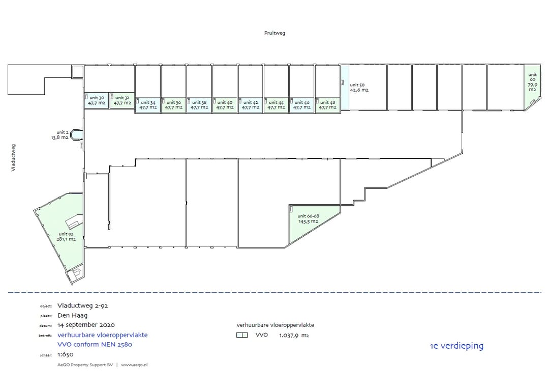 Algemeen : De functionele bedrijfsunits zijn gelegen in het bedrijvencomplex aan de Viaductweg op het bedrijfsterrein Fruitweg te Den Haag, welke afzonderlijk in units zijn onderverdeeld en in combinatie met elkaar gehuurd kunnen worden. Door de goede ligging in centrum is dit een gewilde locatie voor bedrijven in en rondom Den Haag. De units zijn te huur vanaf ca. 190 m².