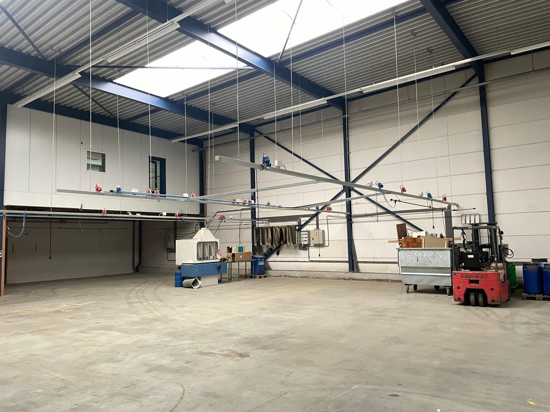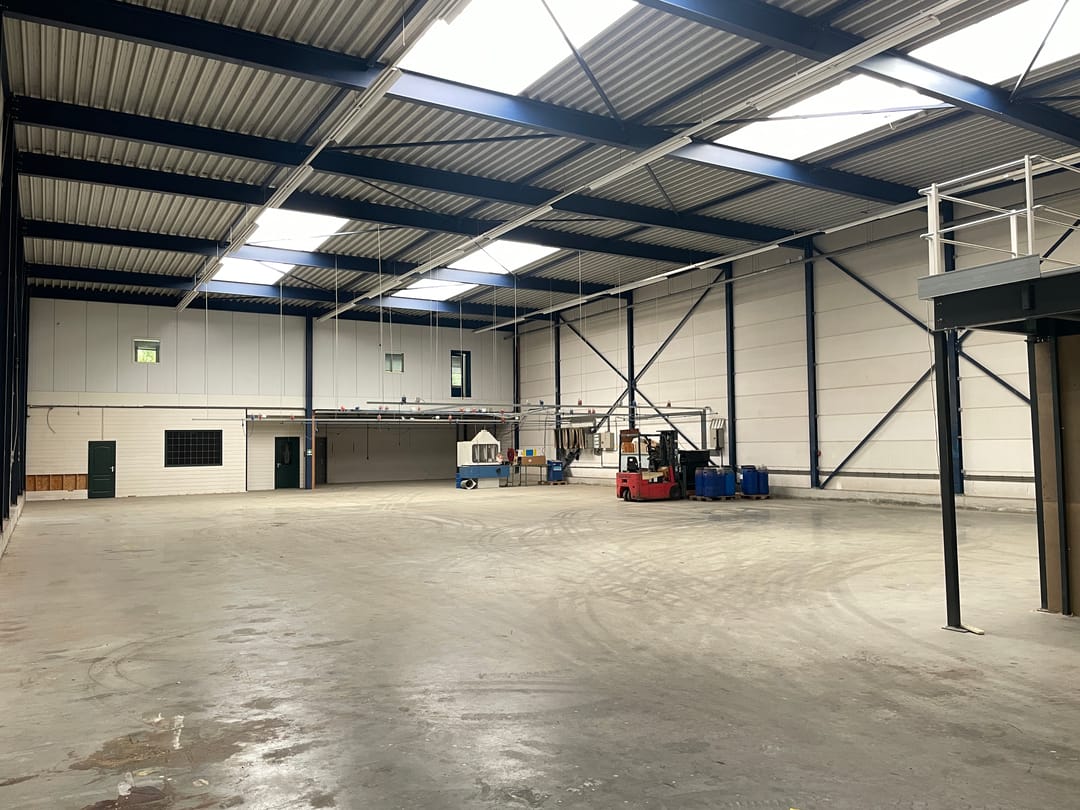 - Lichtstraten, overheaddeuren, krachtstroom, betonvloer, toilet, pantry, inbouwarmaturen en te openen ramen