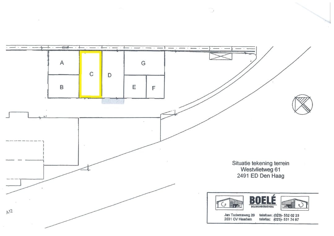 Algemeen: De functionele bedrijfspanden met kantoor zijn gelegen in een kleinschalig bedrijvencomplex op een prominente locatie aan de Westvlietweg in de oksel van de rijkswegen A-4, A-13 en A-12 (Utrechtsebaan). Directe buren zijn onder andere Wasco en DHL. Het bedrijvencomplex wordt 's- avonds afgesloten middels een elektrisch bedienbaar hekwerk.