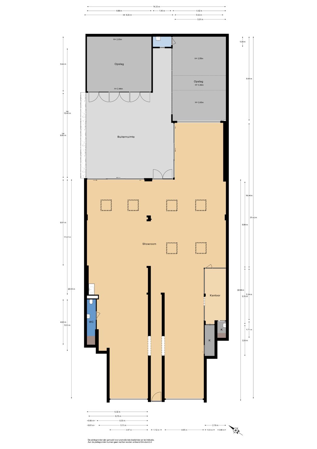 Opslag inpandig: ca. 45 m²