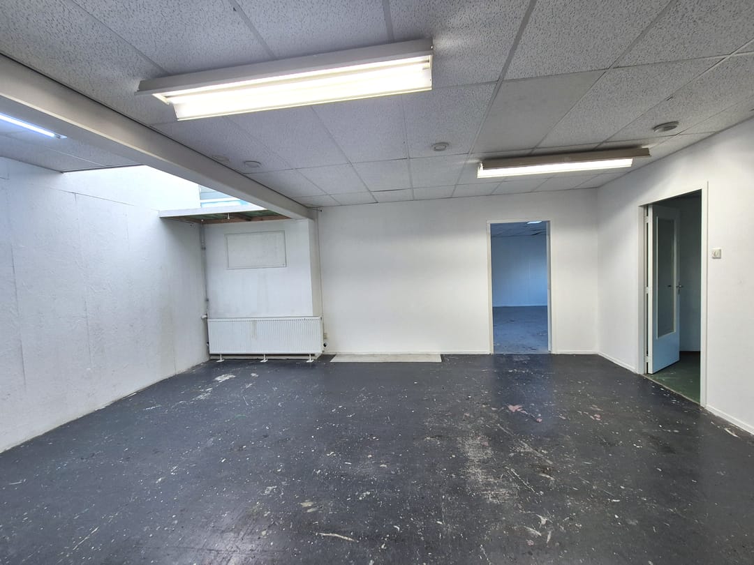 - Betonvloer, toilet, inbouwarmaturen en te openen ramen