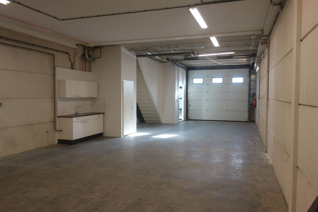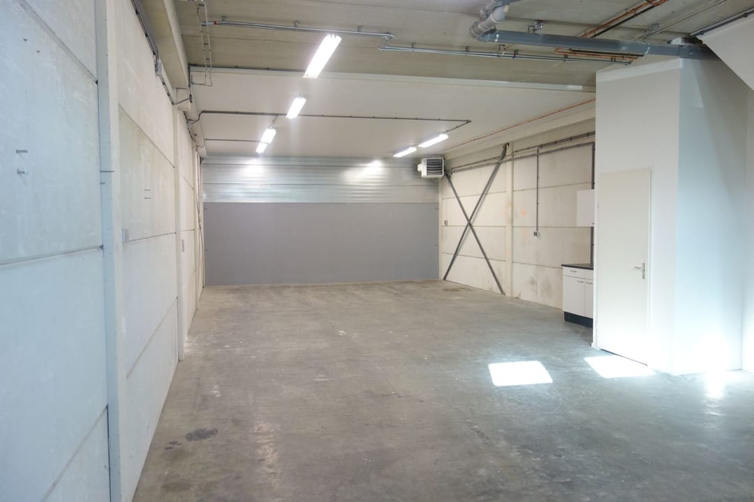 - Lichtstraten, overheaddeuren, krachtstroom, betonvloer, toilet, pantry, inbouwarmaturen en te openen ramen