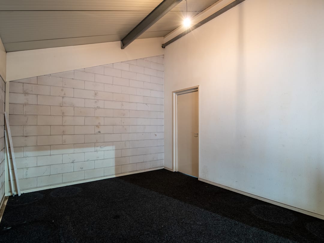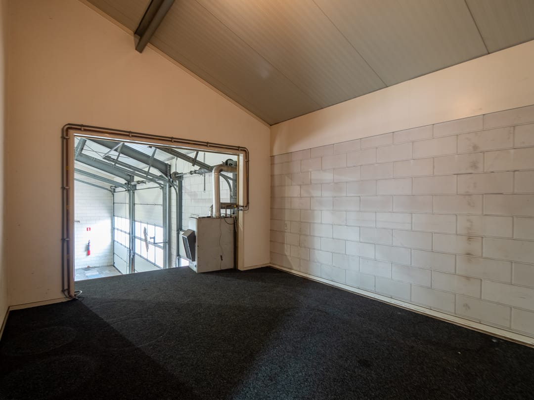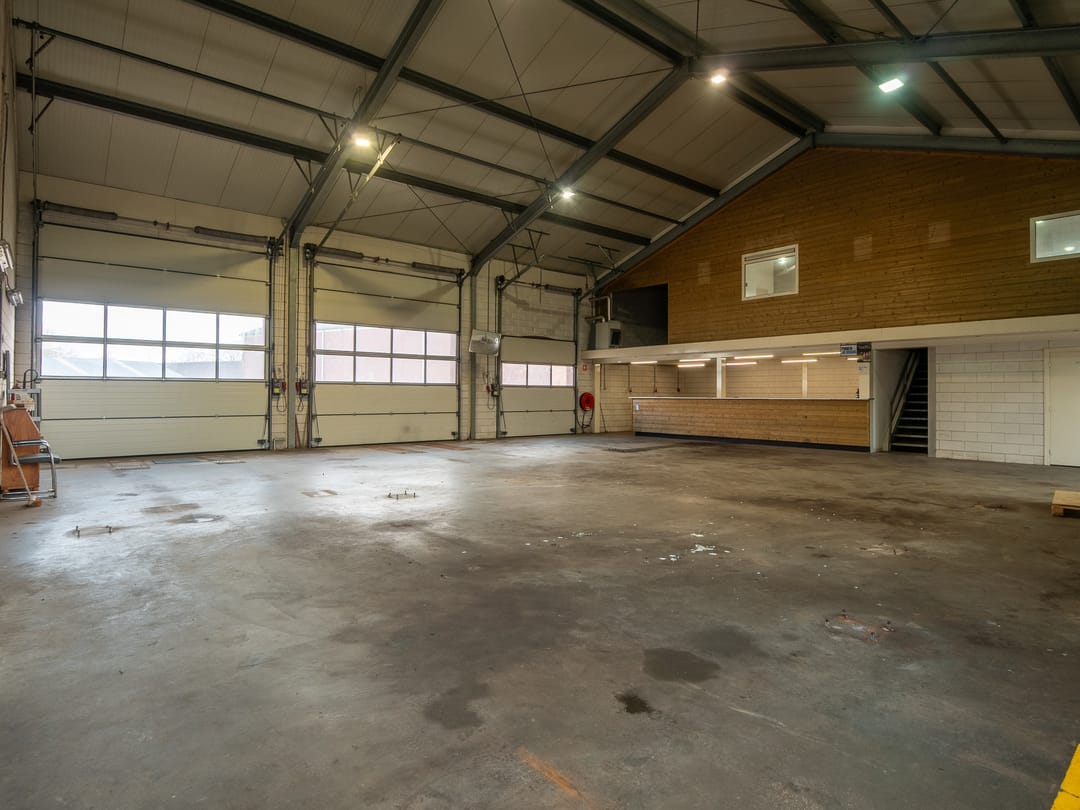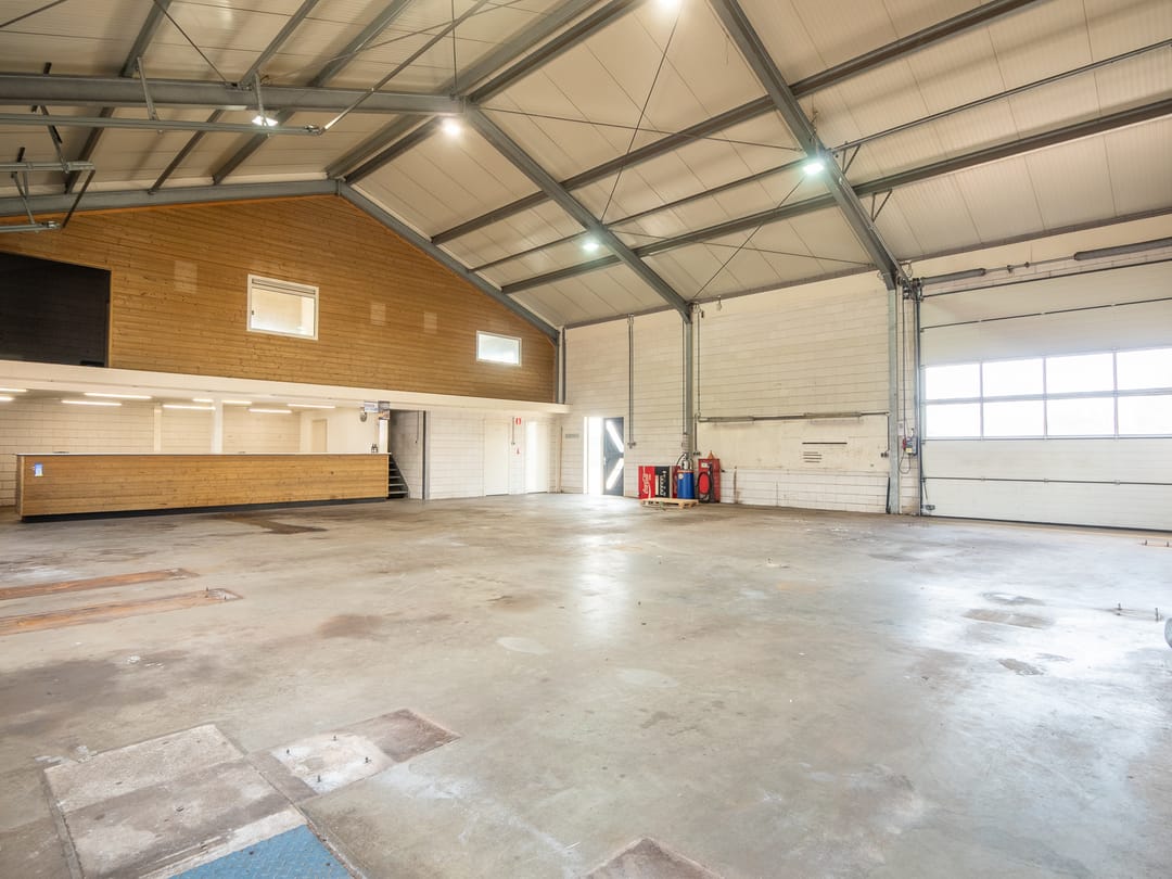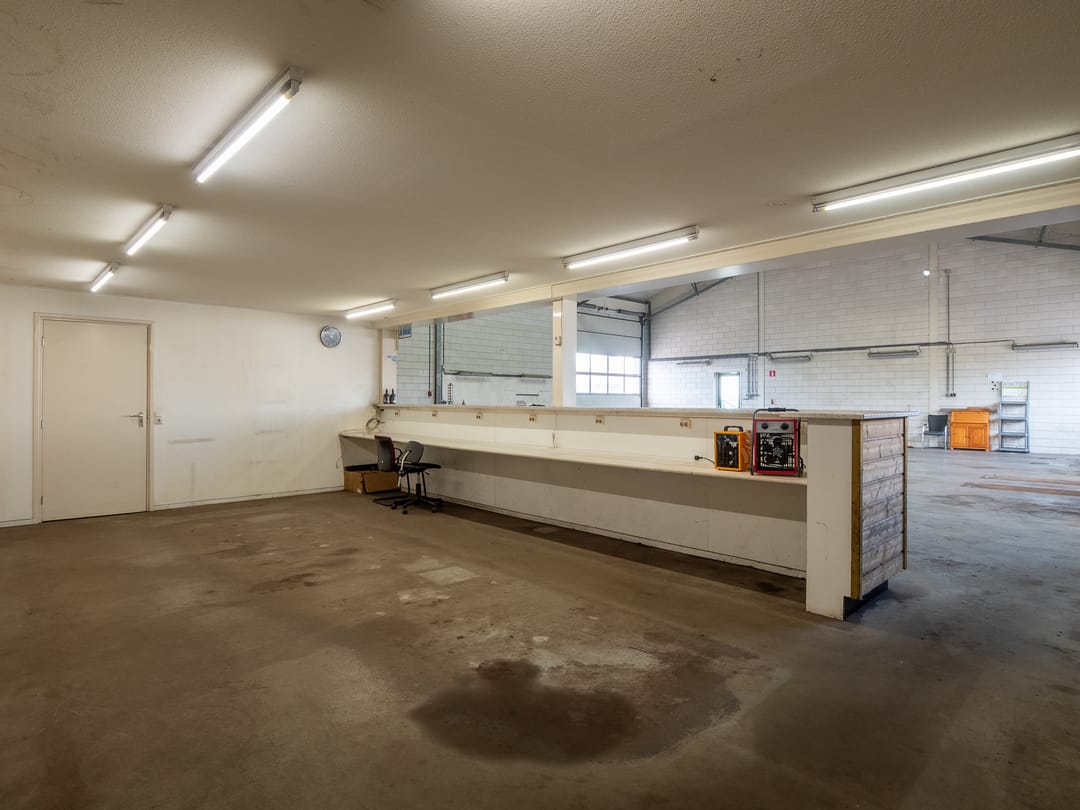 - Lichtstraten, overheaddeuren, krachtstroom, betonvloer, toilet, pantry, inbouwarmaturen en te openen ramen