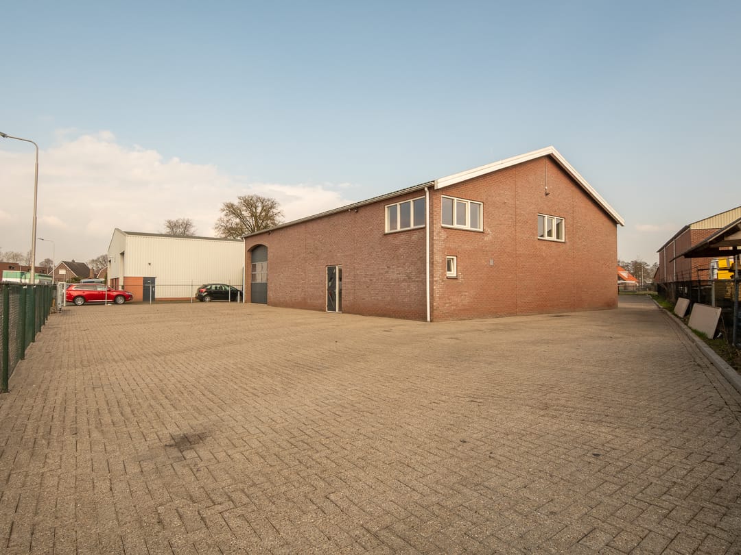 Het pand is gelegen op steenworp afstand van de provinciale weg (N341), goed bereikbaar (ook voor vrachtverkeer) vanaf de rondweg en beschikt over ruime parkeergelegenheid. Het pand is gelegen op een perceel van circa 1.578 m2 en is op de begane grond voorzien van een grote werkplaats/opslagruimte met een hoge overheaddeur (4 mtr) aan de voorzijde en drie aan de achterzijde. Op de verdieping is er een kantoorruimte, een keuken en extra bergruimte tot je beschikking.