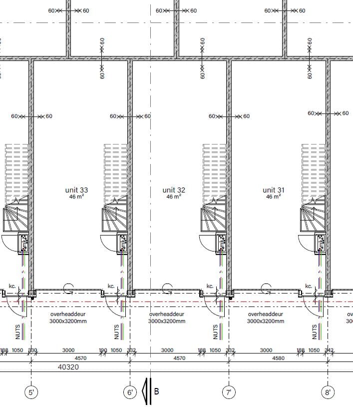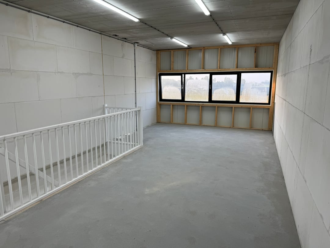- Overheaddeuren, betonvloer, toilet en te openen ramen