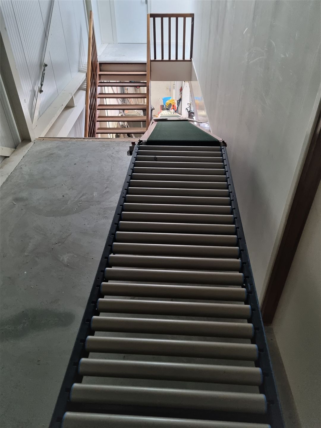 De loods is geheel onderheid met gevlinderde betonvloeren die een druk van minimaal 200 kg per m² kunnen weerstaan. Het pand is volledig geïsoleerd en voorzien van twee brede trappen en een transportband naar de eerste etage.