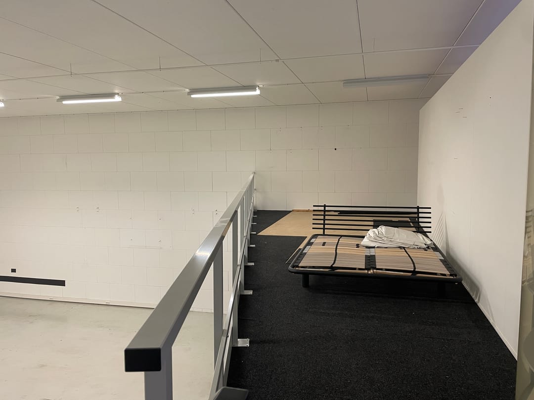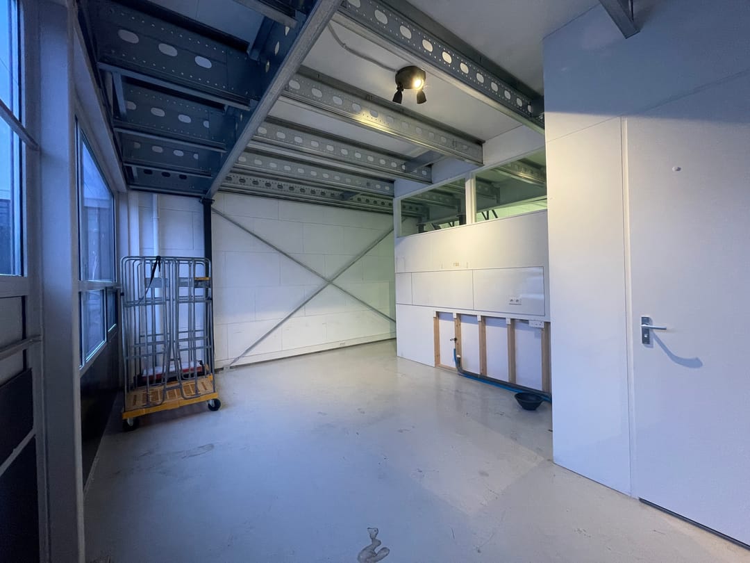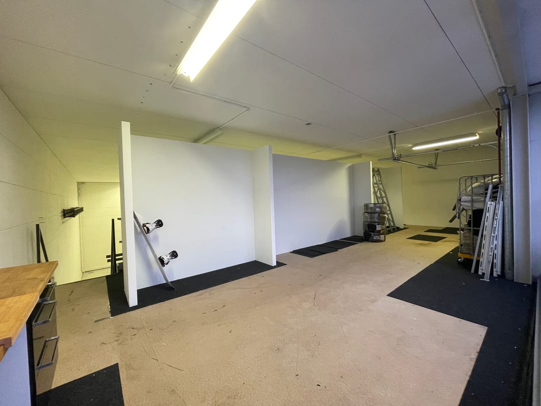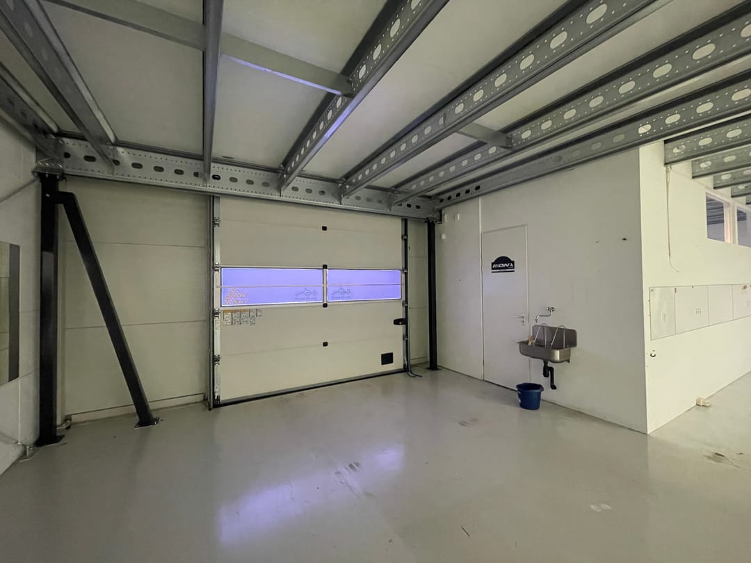 - Overheaddeuren, krachtstroom, betonvloer, heater, toilet en te openen ramen