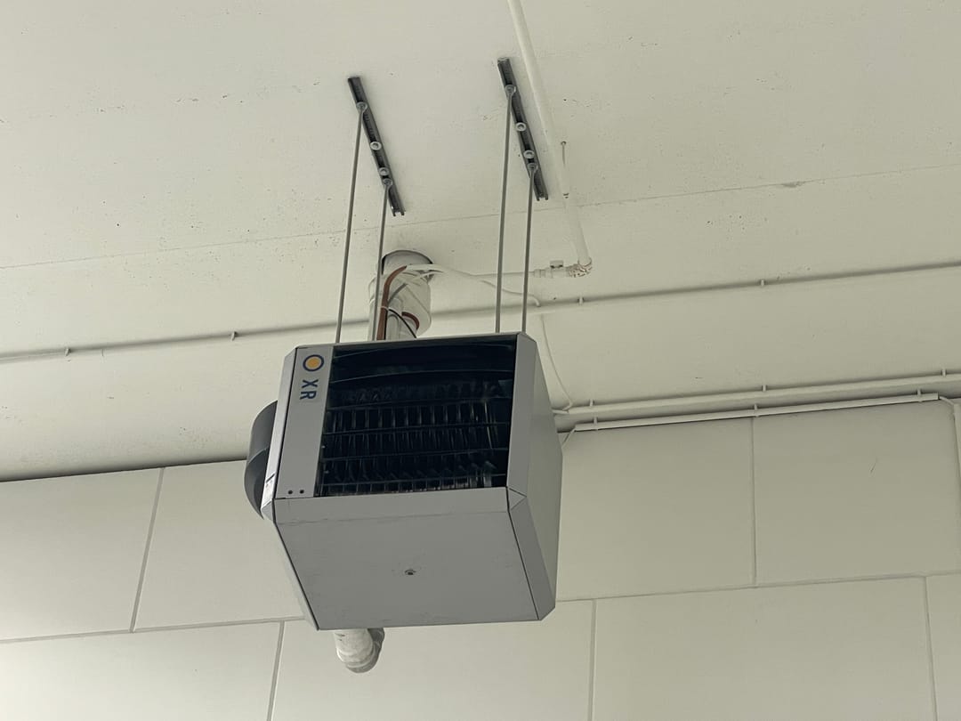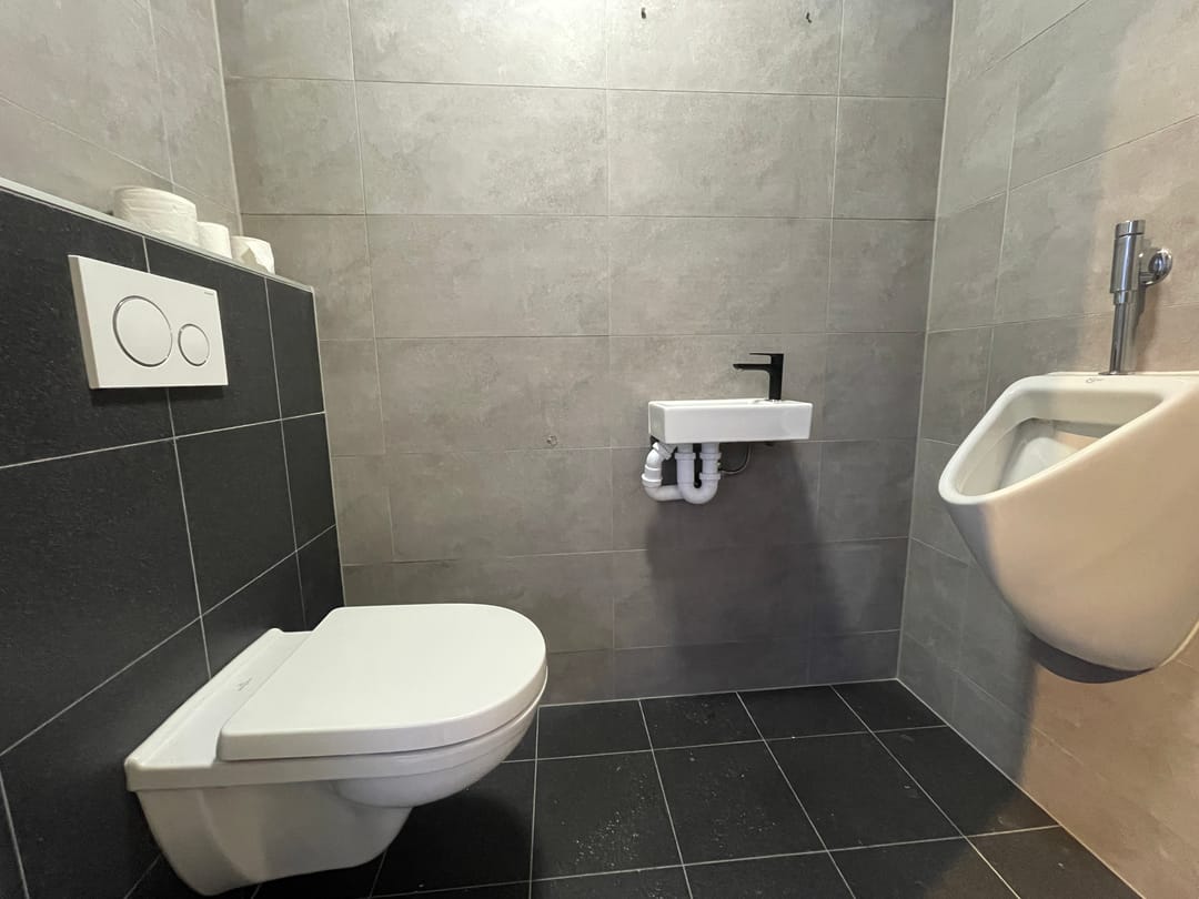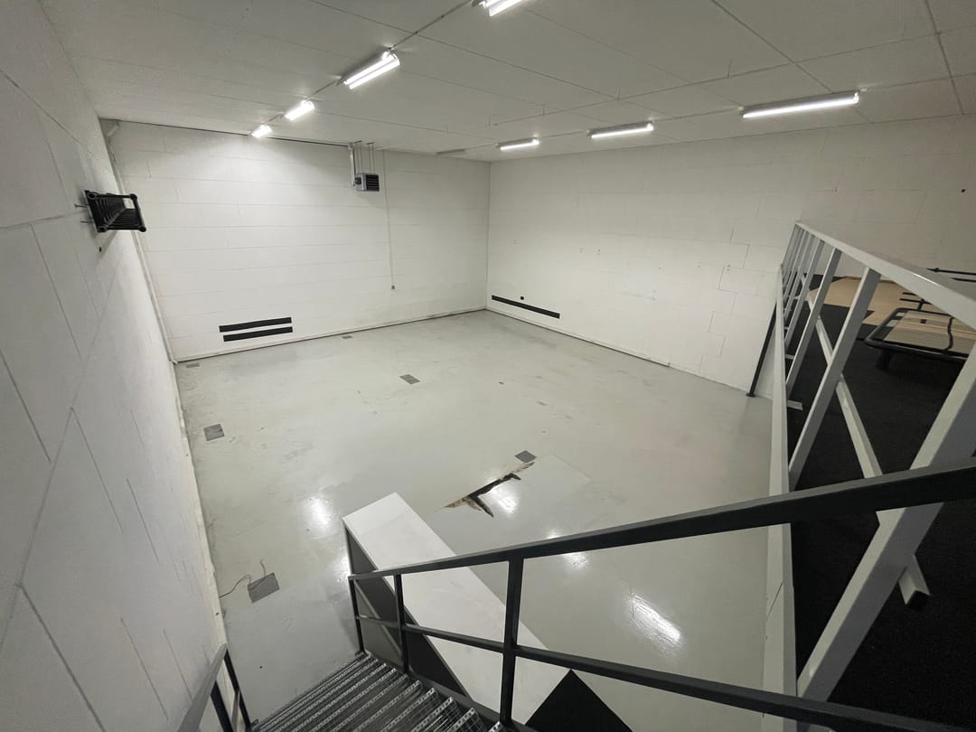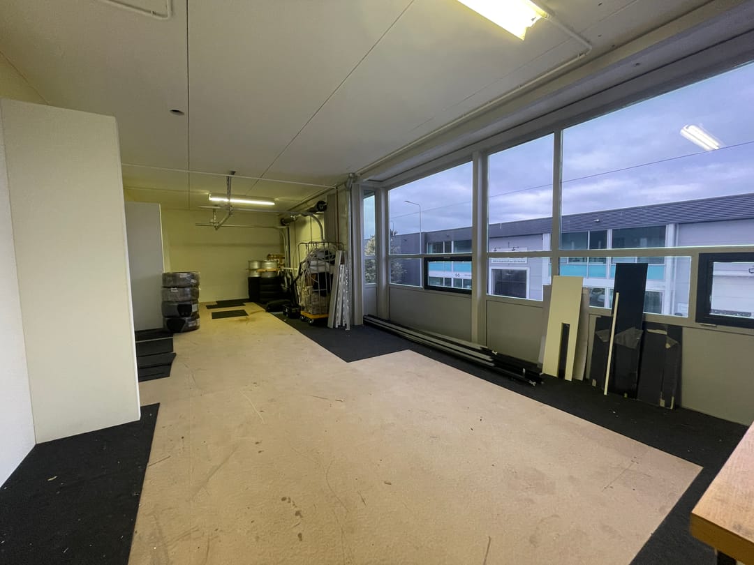 - Overheaddeuren, krachtstroom, betonvloer, heater, toilet en te openen ramen
