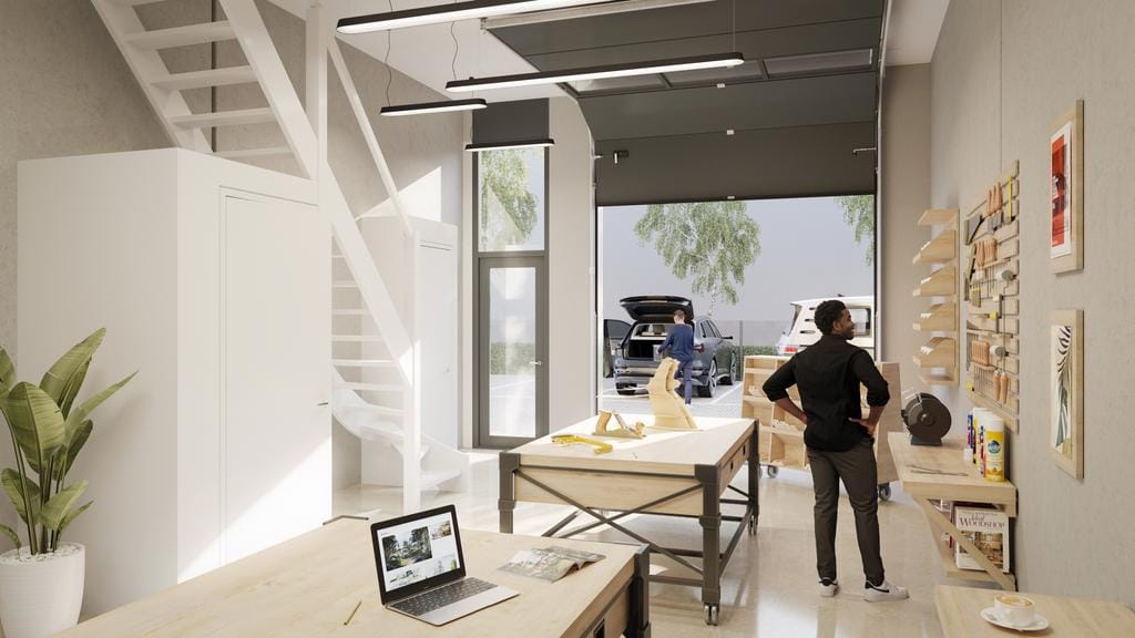 • Elektrisch bedienbare overheaddeur met afstandsbediening.