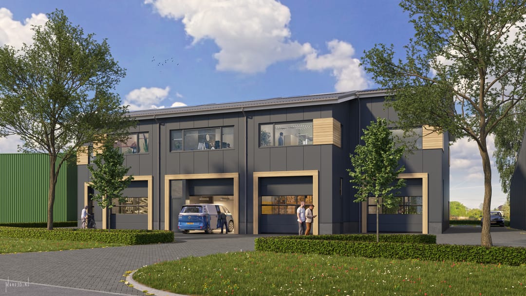 Bedrijfsgebouwen die worden gerealiseerd aan de Holterweg 2 te Deventer.