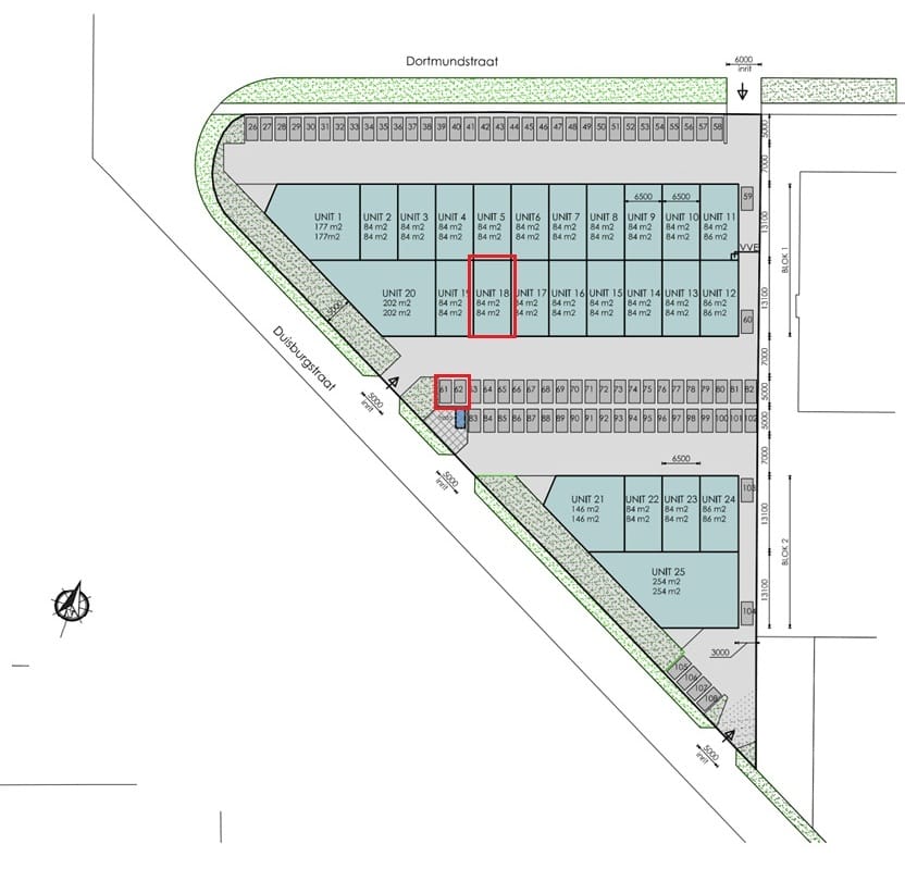 - afmeting unit 12,90 meter lang en 6,50 meter breed.