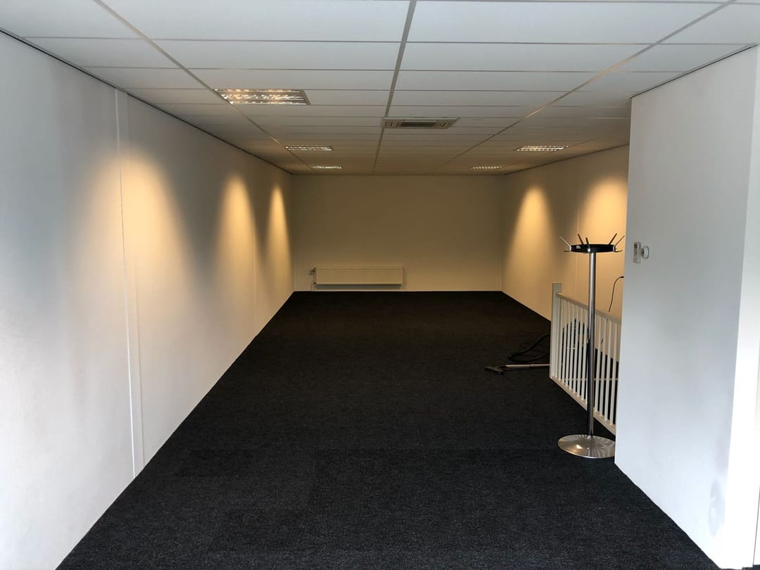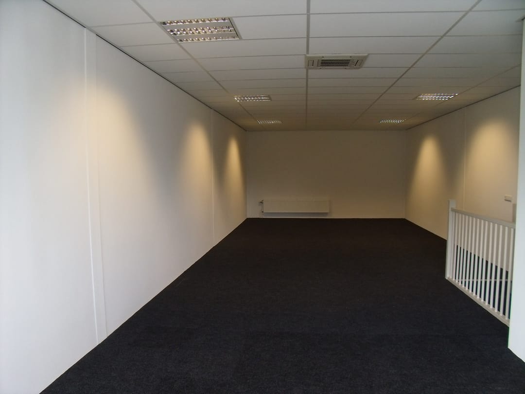 - Systeemplafonds met verlichtingsarmaturen ter plaatse van de kantoorruimte