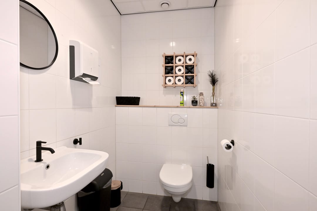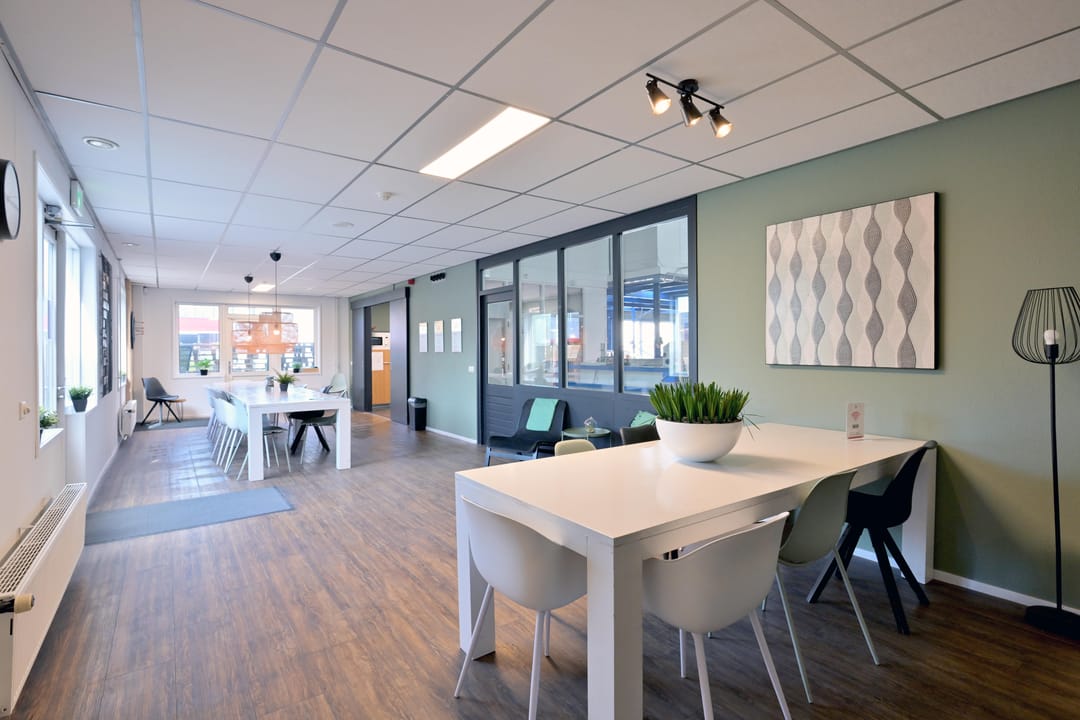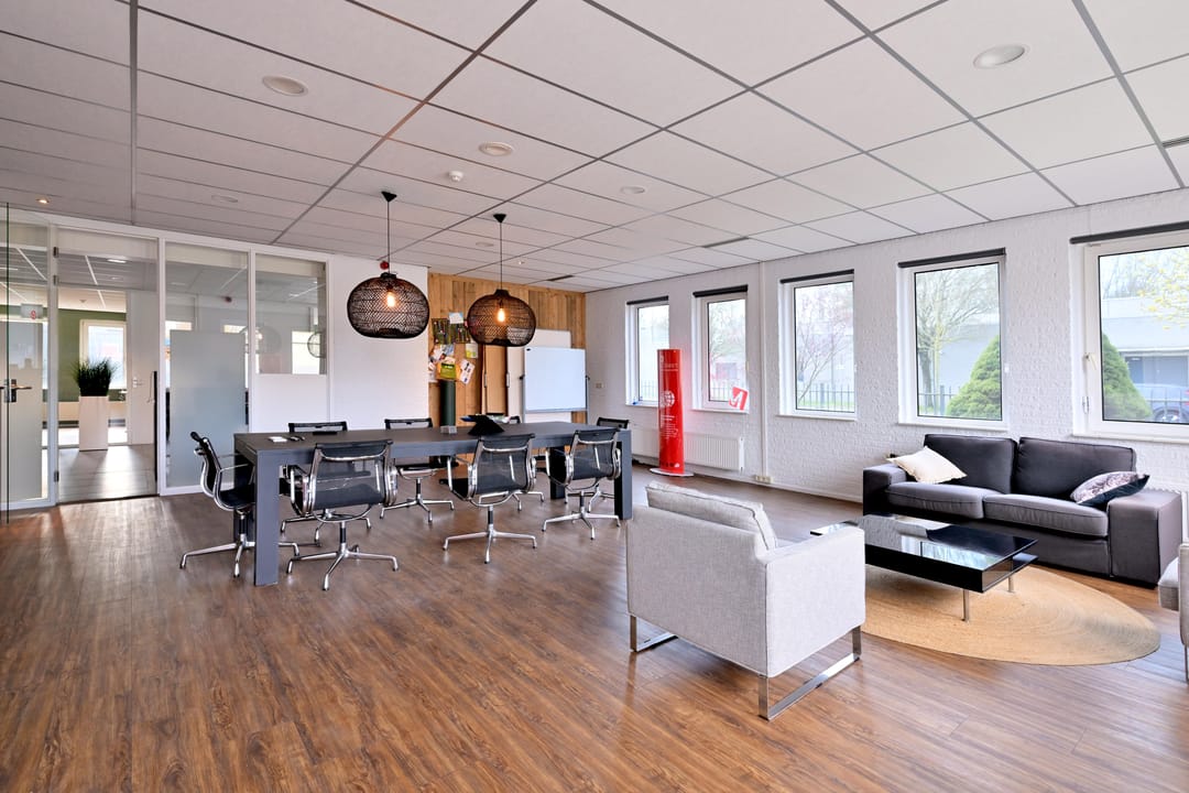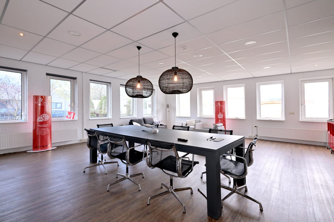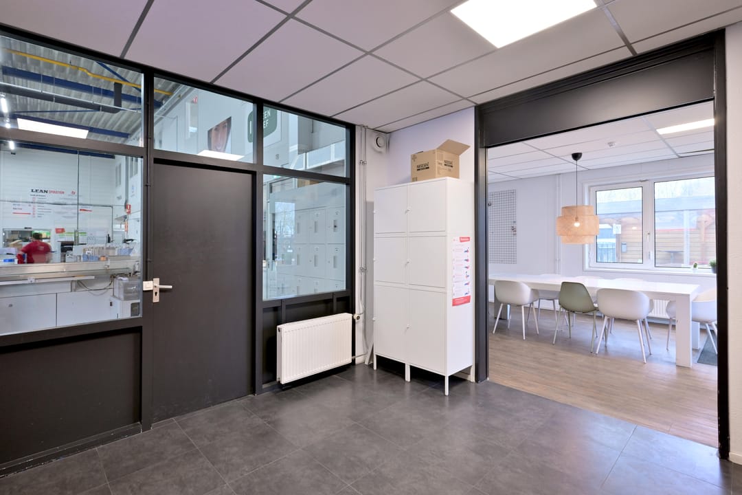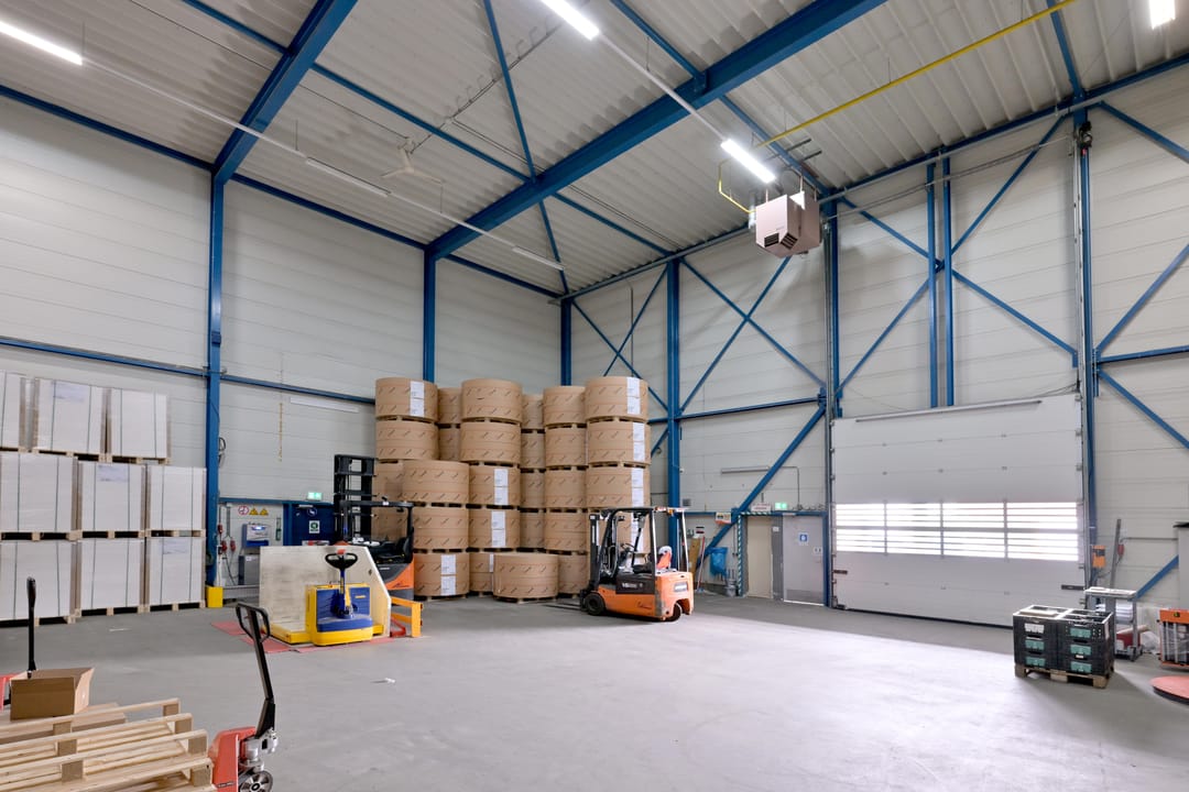 - Lichtstraten, overheaddeuren, krachtstroom, betonvloer, heater, toilet, pantry, airconditioning, inbouwarmaturen en te openen ramen