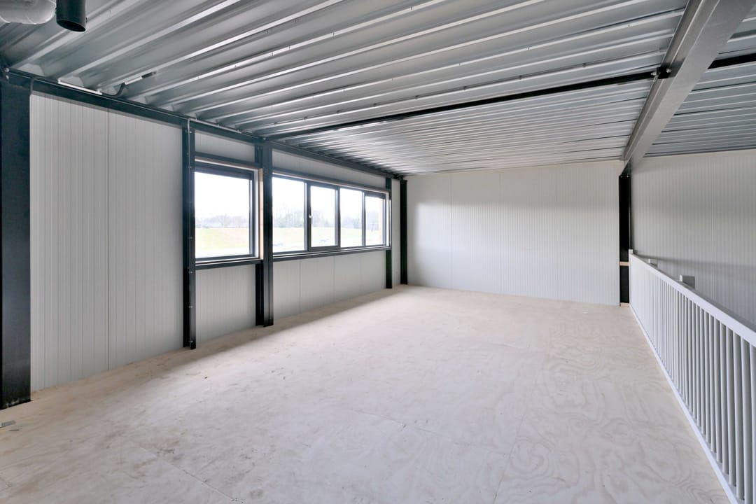 De verdiepingsvloer is multifunctioneel, zo kan deze worden gebruikt als opslagruimte maar kan deze ook als moderne kantoorruimte of kantine worden ingericht.