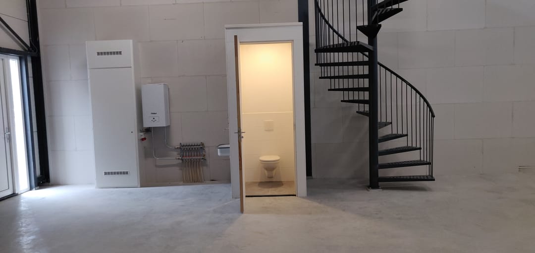 - Overheaddeuren, krachtstroom, betonvloer en toilet