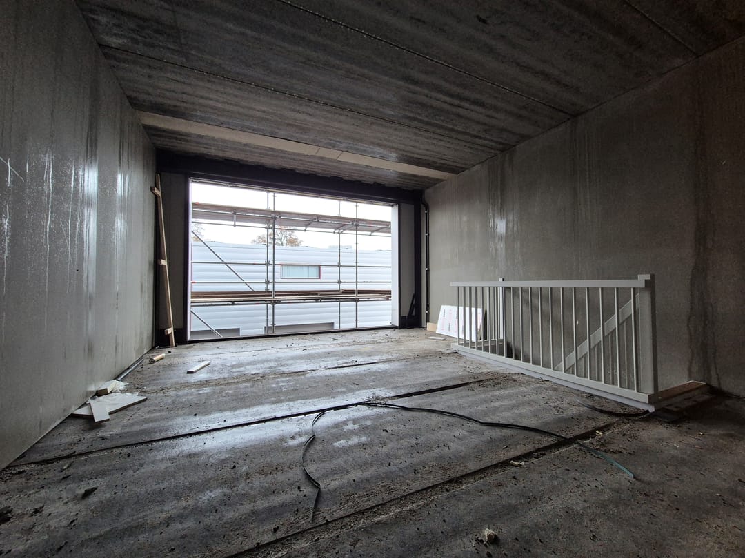 - Overheaddeuren, betonvloer en toilet