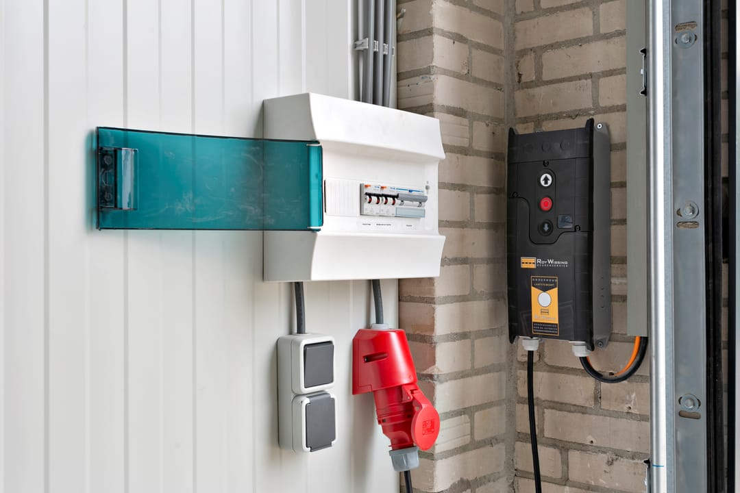 elektra-aansluitingen, verlichting en glad afgewerkte cementdekvloer.