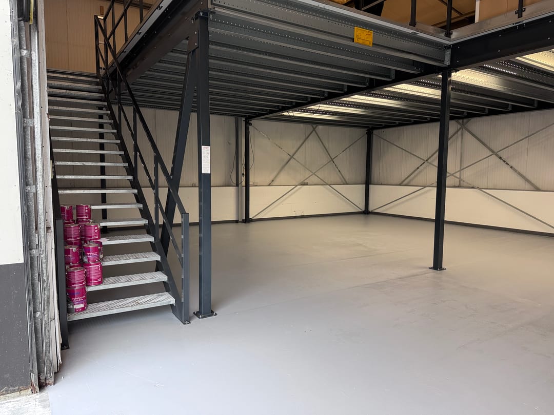 -Systeemvloer met kantoorruimte op de eerste verdieping, middels twee trappen bereikbaar