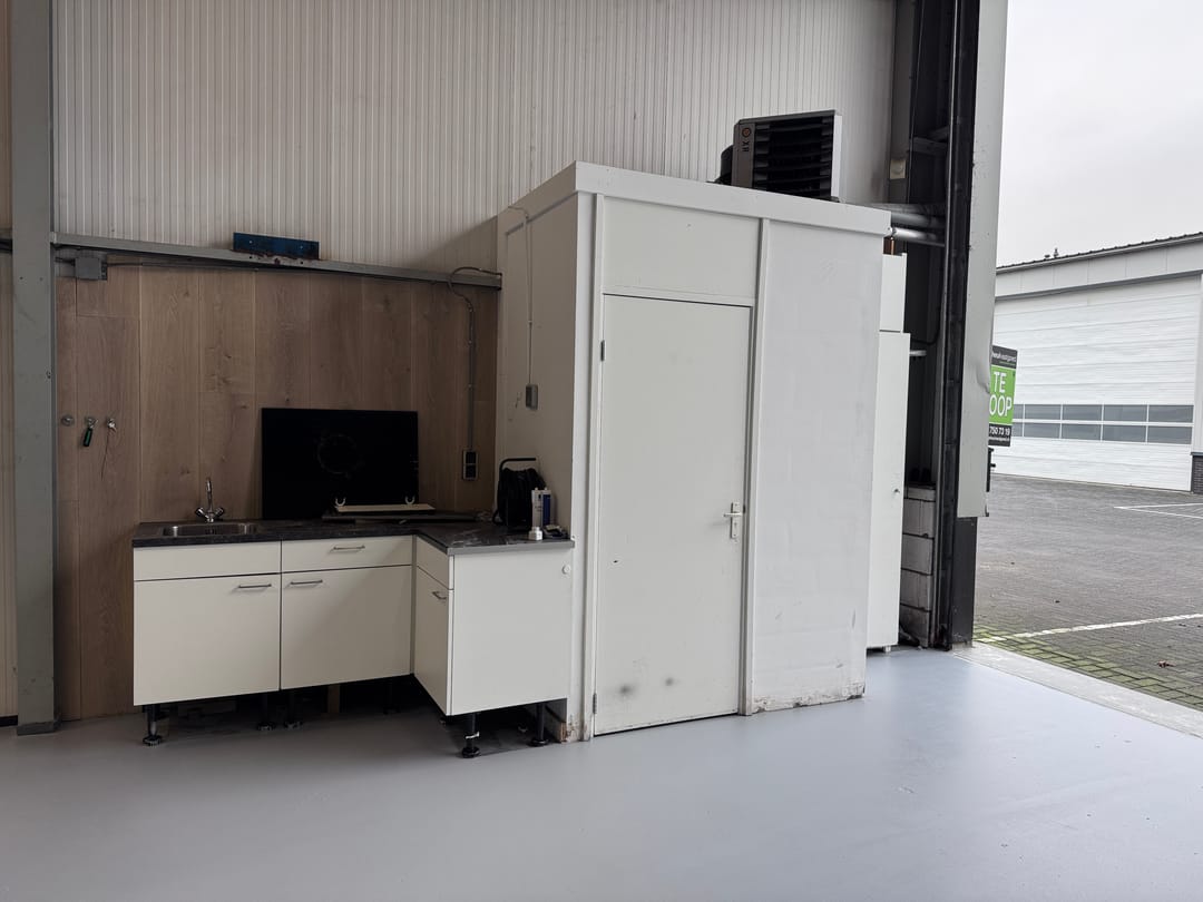 - Mechanische ventilatie, lichtstraten, overheaddeuren, krachtstroom, betonvloer, heater, toilet en pantry