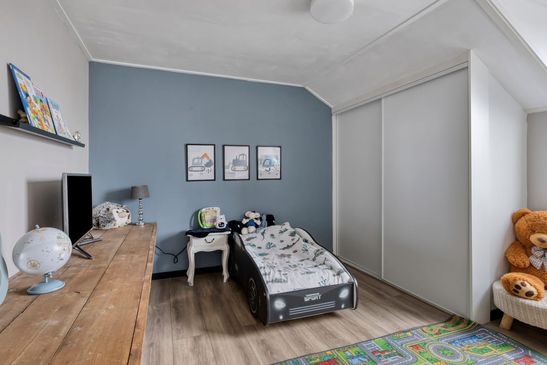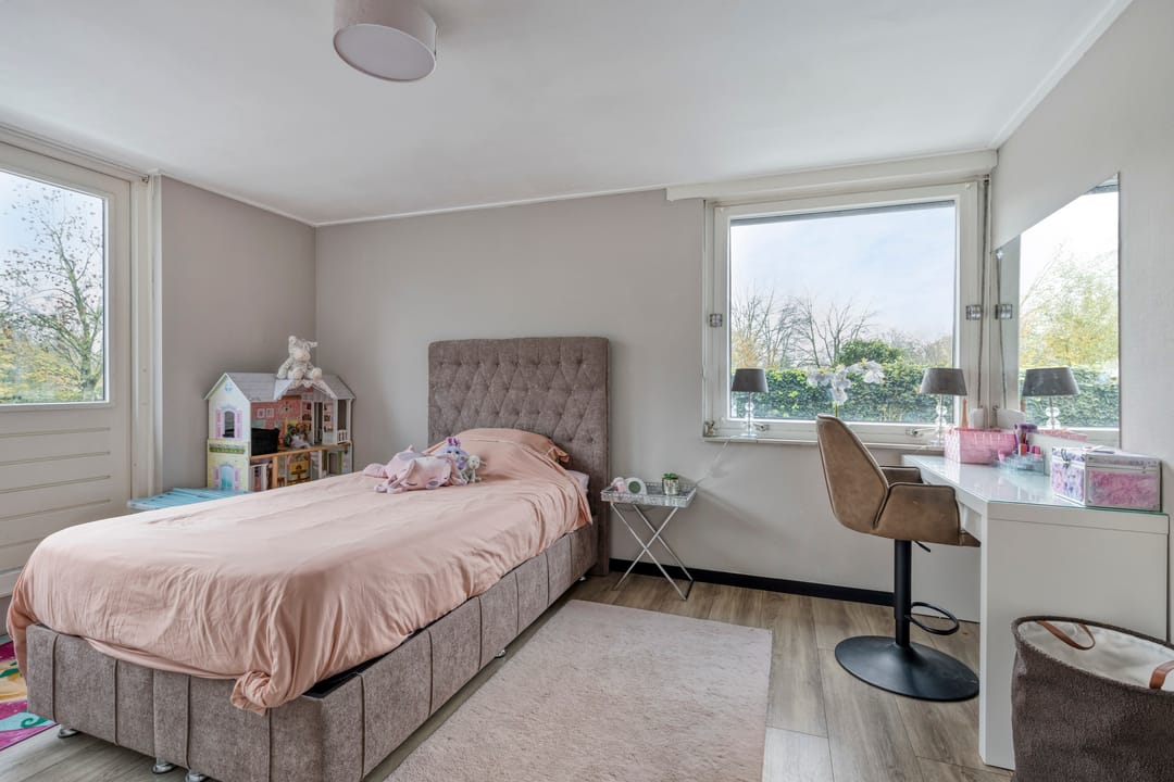 Op de verdieping bevinden zich vier ruime slaapkamers, waarvan drie zijn voorzien van airconditioning die zowel kan koelen als verwarmen. De volledige bovenverdieping is uitgerust met rolluiken, wat zorgt voor optimale verduistering en isolatie.