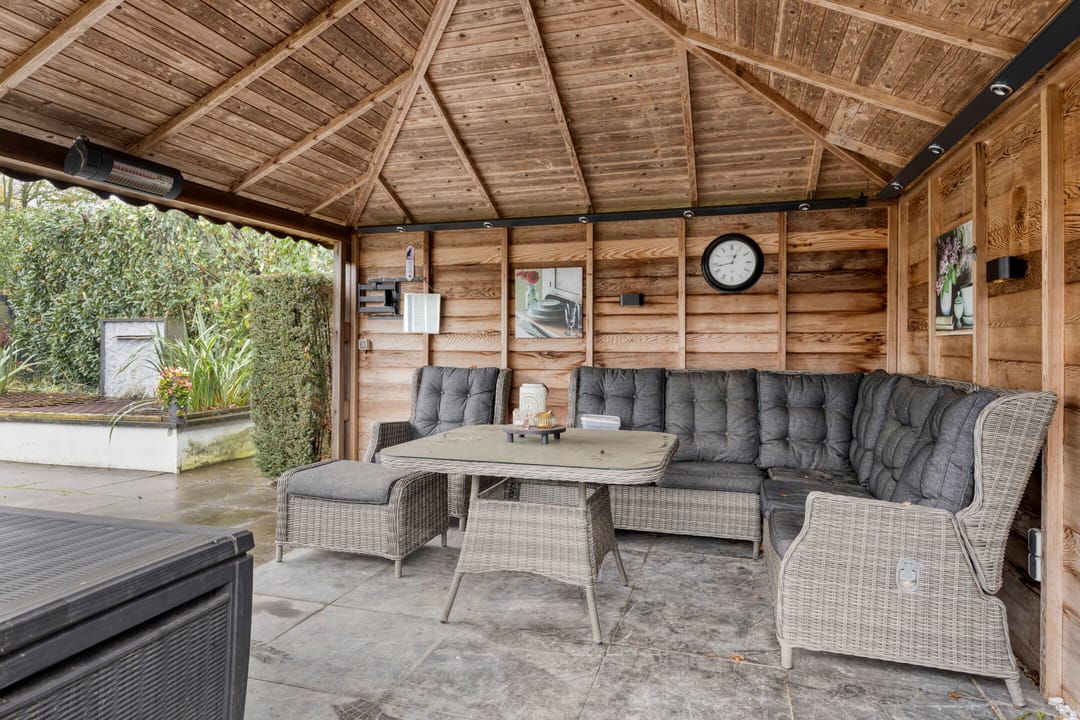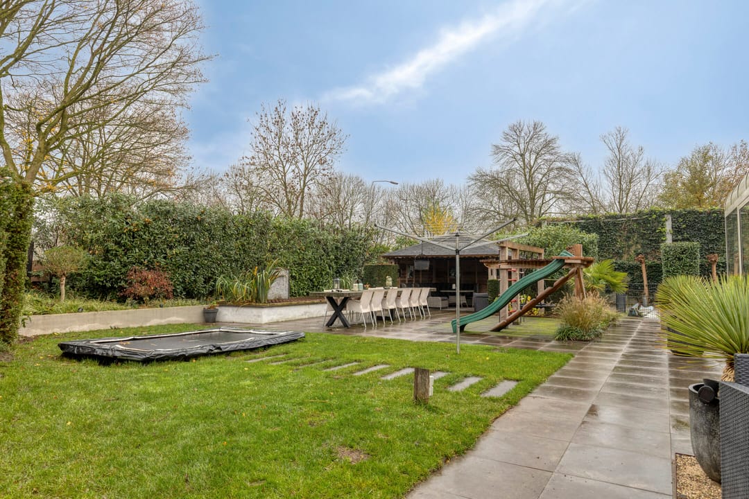 De tuin is een waar buitenparadijs met een verwarmd zwembad, dat te regelen is met een aparte thermostaat. Vier zonweringen op de benedenverdieping zorgen voor optimaal comfort op warme dagen.