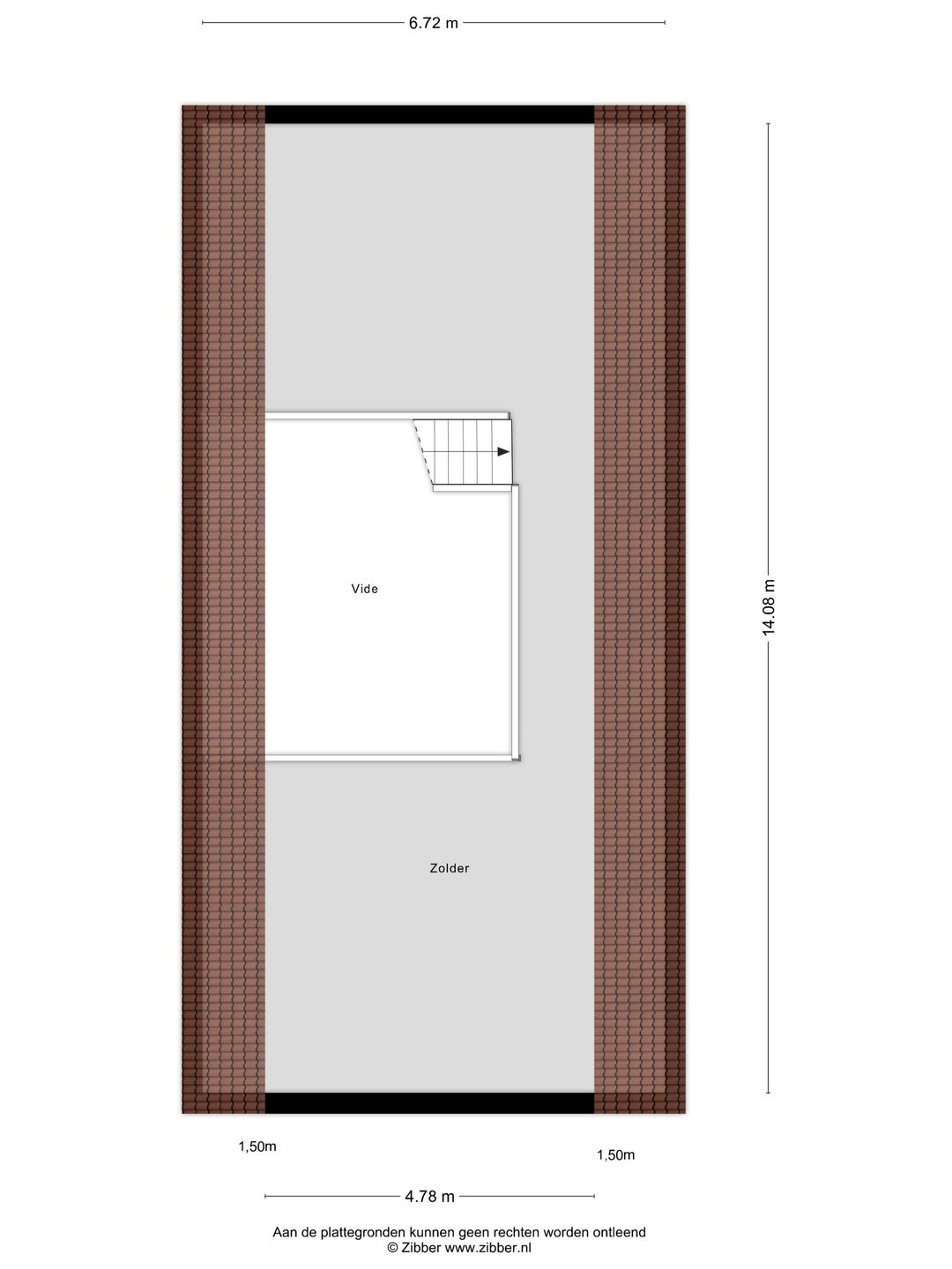 Aansluitend bereikt u de brede stalen trap die toegang biedt tot de zolder/vliering. Deze verdieping biedt circa 75 m² aan functionele ruimte, exclusief een aanvullende vliering van circa 5 m².
