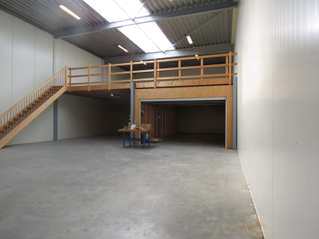 - Lichtstraten, overheaddeuren, krachtstroom, betonvloer, heater, toilet en pantry