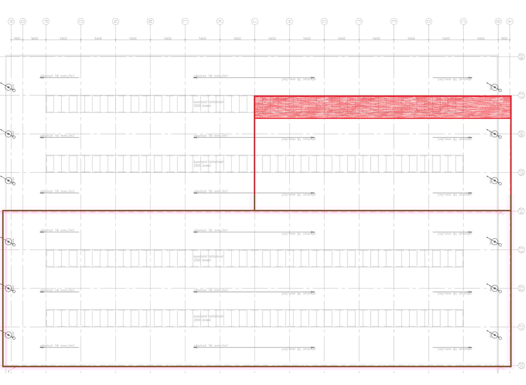 - Lichtstraten in het dak ten behoeve van veel daglichttoetreding;
