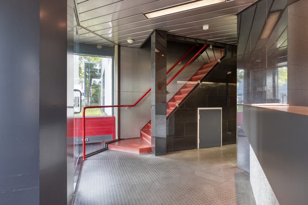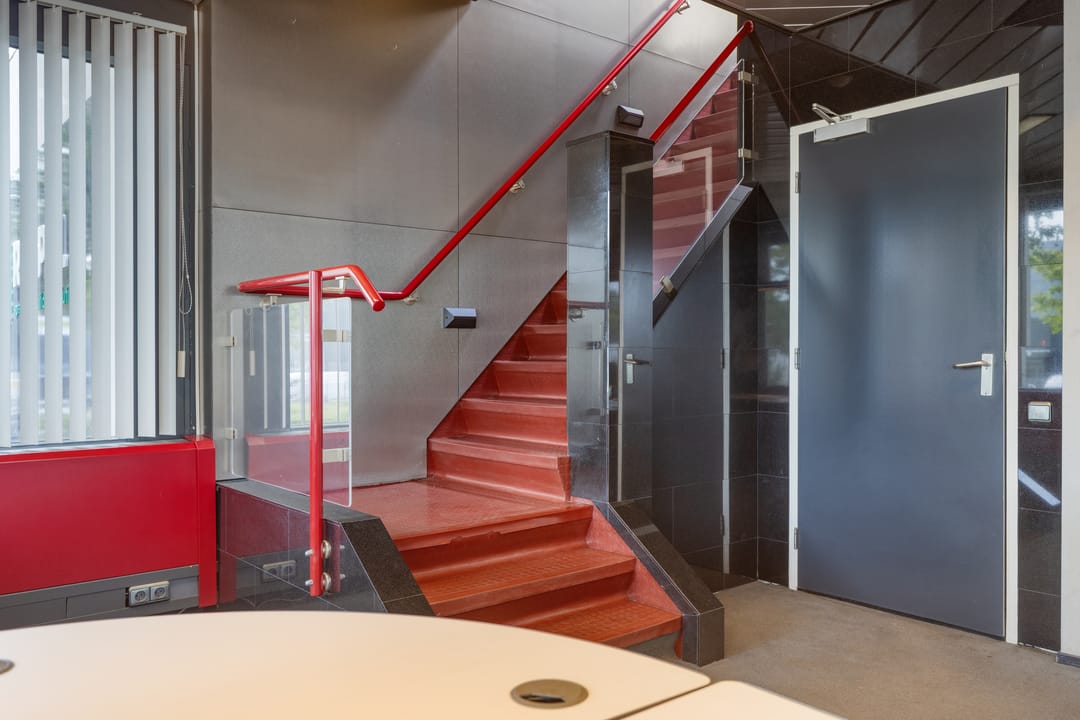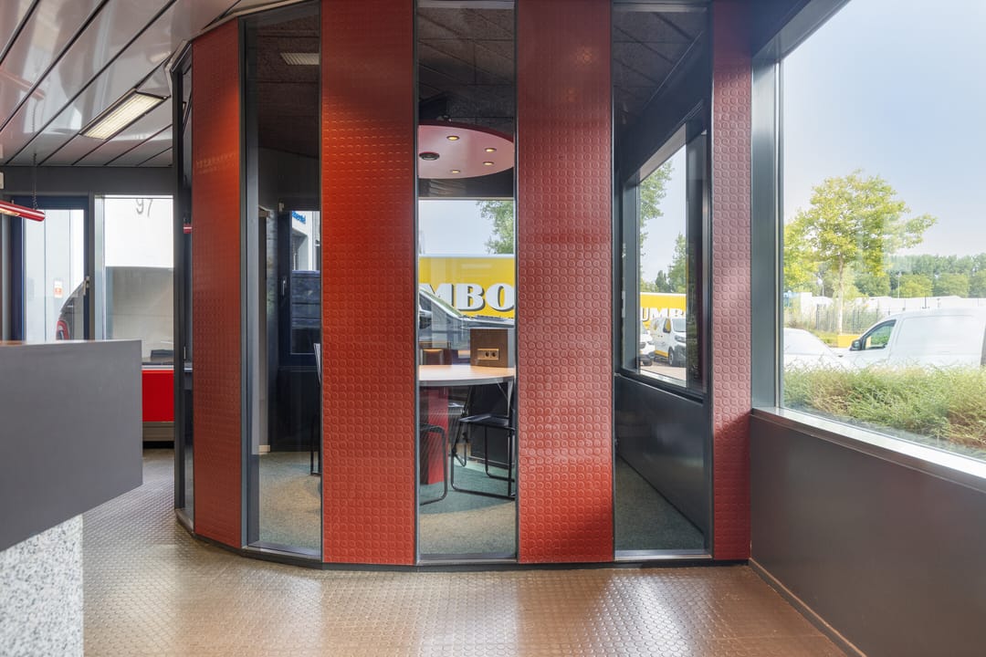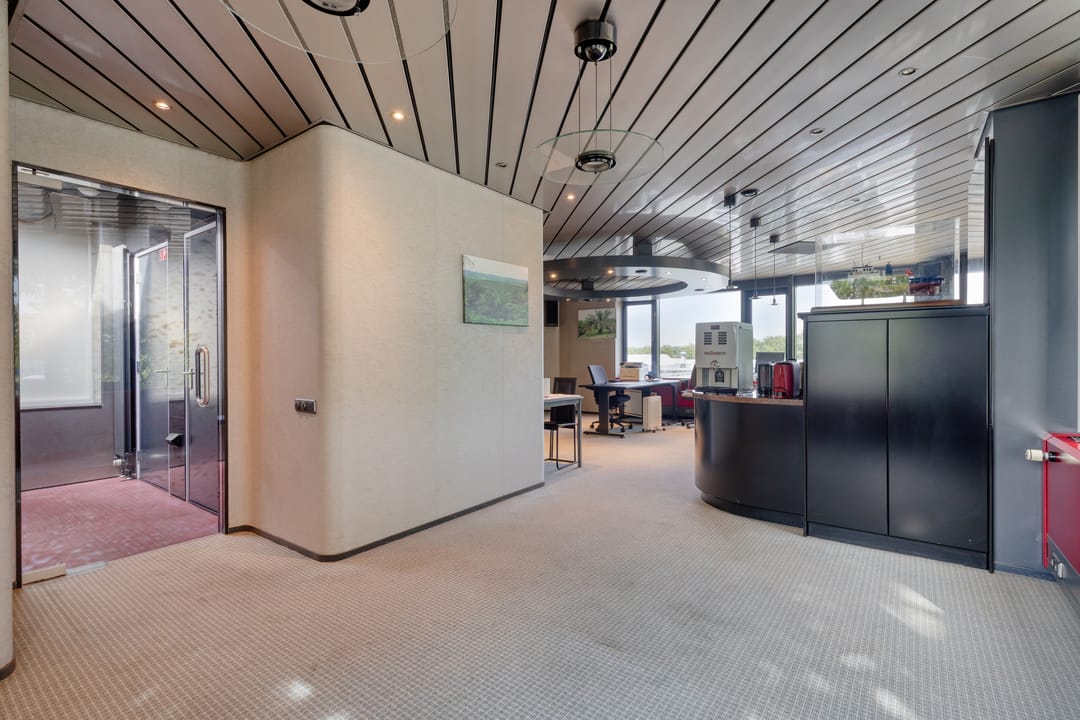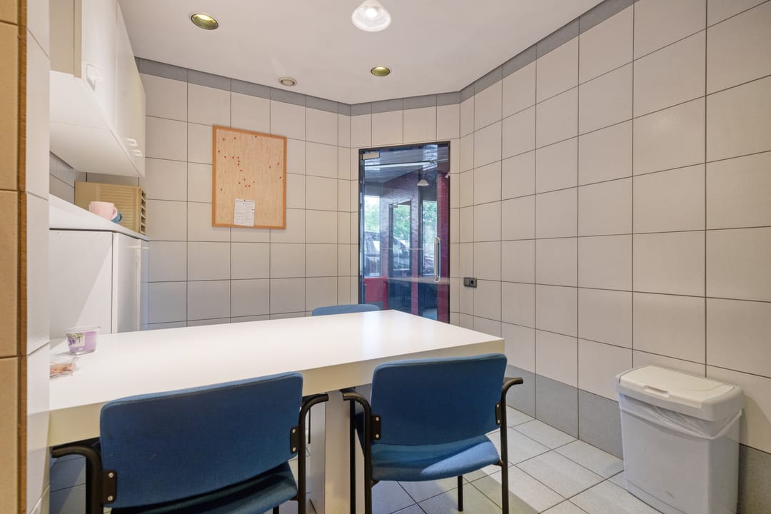 - De kantoorruimten is gedeeltelijk voorzien van een tegelvloer en vloerbedekking;