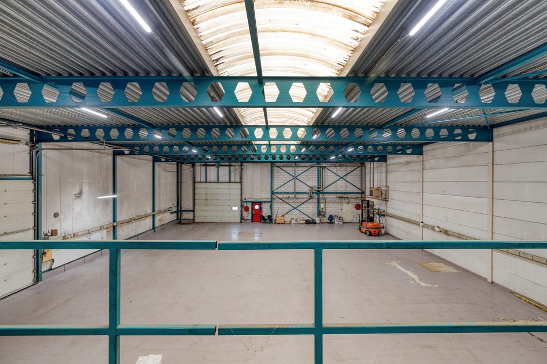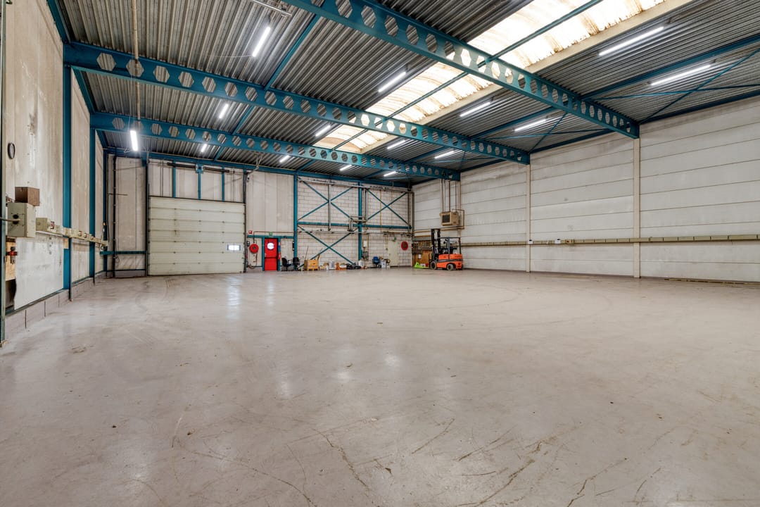 - Lichtstraten, overheaddeuren, betonvloer, heater, toilet en pantry
