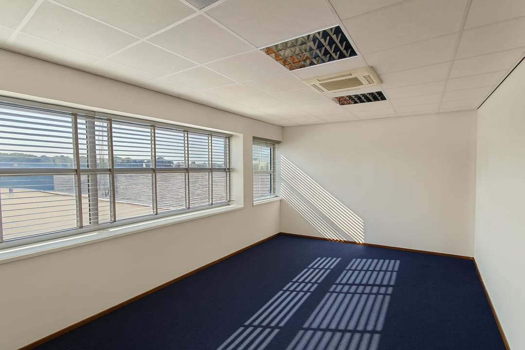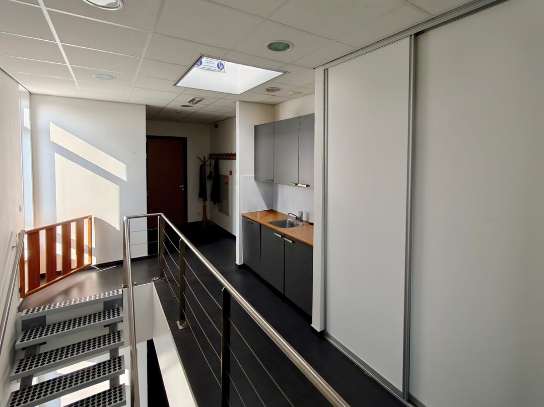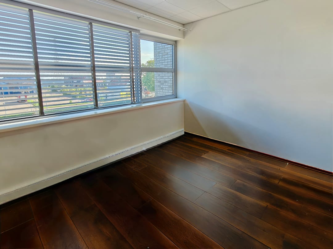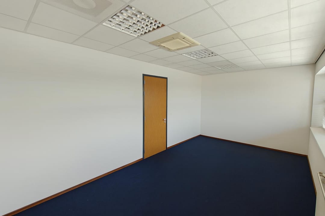Gang (afm. ca. 7.85 x 3.25, minus trapgat van ca. 6 m2, plafondhoogte ca. 2.75 m.), bergkast, modern toilet. Kantoorruimte (plafondhoogte ca. 3.25 m.) met daglicht en glazen pui als afscheiding met de bedrijfshal.