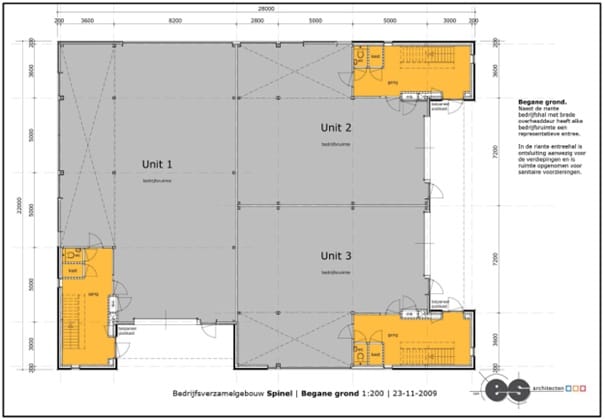 - Overheaddeuren, krachtstroom, betonvloer, heater, toilet, pantry, airconditioning, inbouwarmaturen en te openen ramen