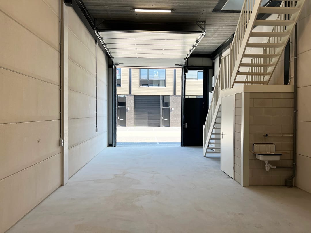 De unit is standaard voorzien van een kanaalplaten (betonnen) verdiepingsvloer, met zandcement deklaag, over het gehele begane grond vloeroppervlak. Daarnaast beschikt de unit over een betegeld toilet, meterkast met elektra en water, vrije hoogte van circa 4,6 meter, een elektrisch bedienbare overheaddeur met een hoogte van 4 meter en 2 eigen parkeerplaatsen. Op het dak liggen zonnepanelen waarvan de opbrengst ter goede komt aan de gebruiker. Ook is er een laadpaal aanwezig voor het opladen van elektrische auto’s en een buitenkraan.