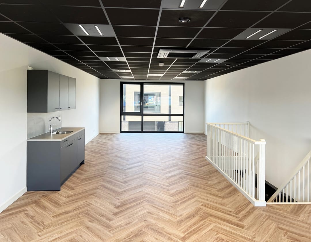 Geheel naar de eisen van deze tijd is de bedrijfsunit gasloos worden uitgevoerd. Als alternatief voor aardgas is gekozen voor een full-electric concept waarbij de panden voor de energievoorziening alleen een aansluiting op het elektriciteitsnet hebben. De verwarming en koeling vindt plaats door split airco units. Op de verdieping is de ruimte afgewerkt met een zwarte systeemplafond met led-verlichting, wat zorgt voor een verzorgd uiterlijk geheel naar de eisen van deze tijd. De wanden zijn voorzien van gesausd behang en de vloer is voorzien van een visgraat PVC vloer. Ook is er een uitgebreide pantry aanwezig. Kortom, de unit is echt turn-key, u hoeft enkel te verhuizen.