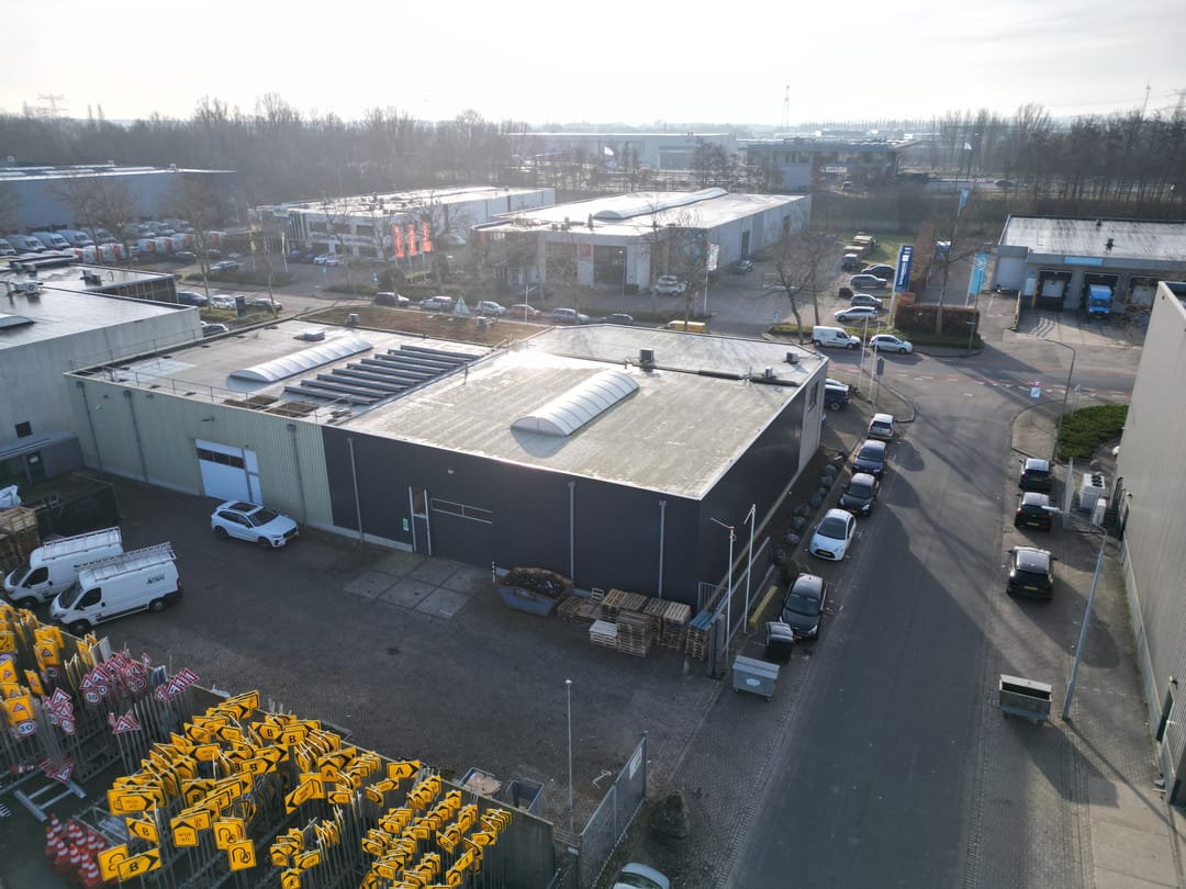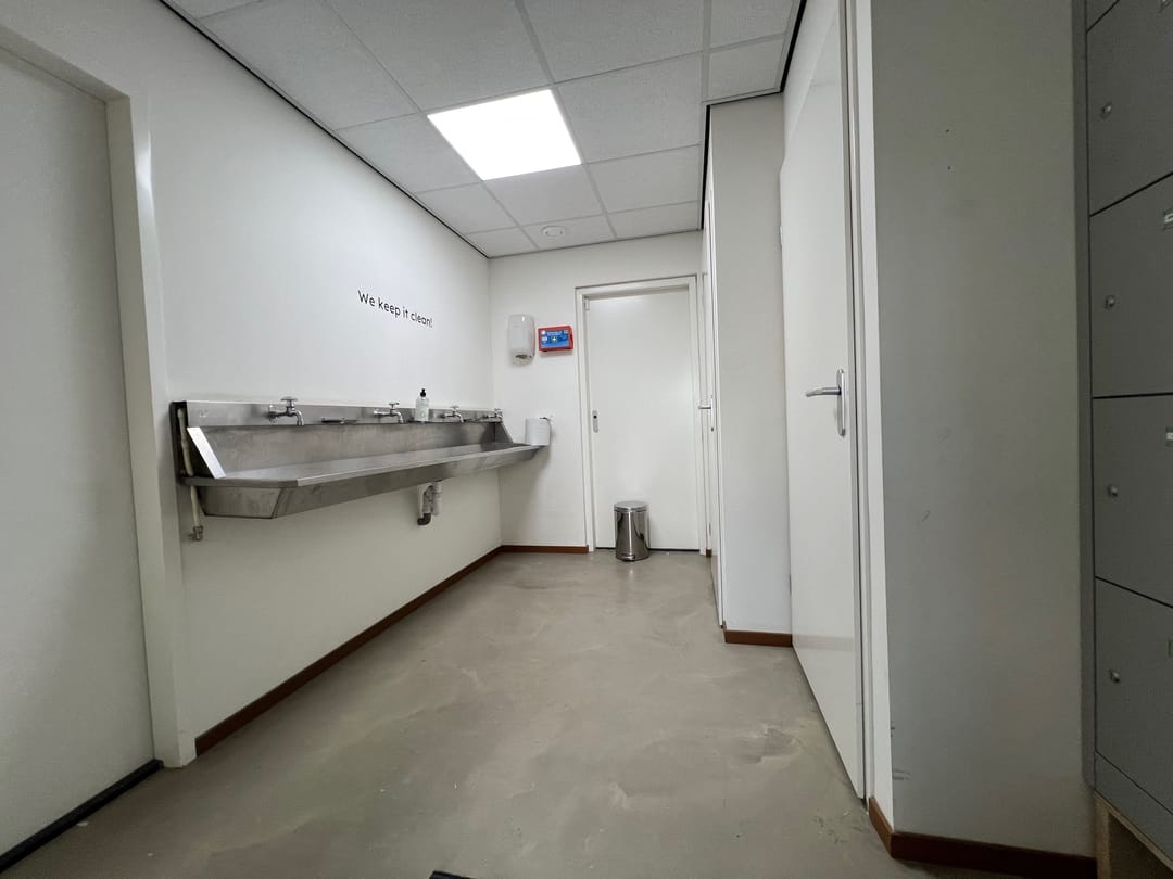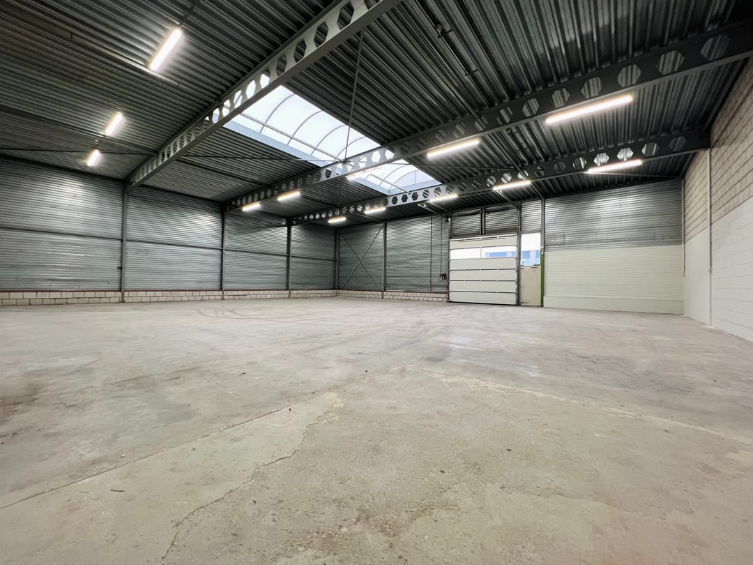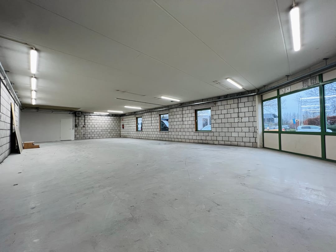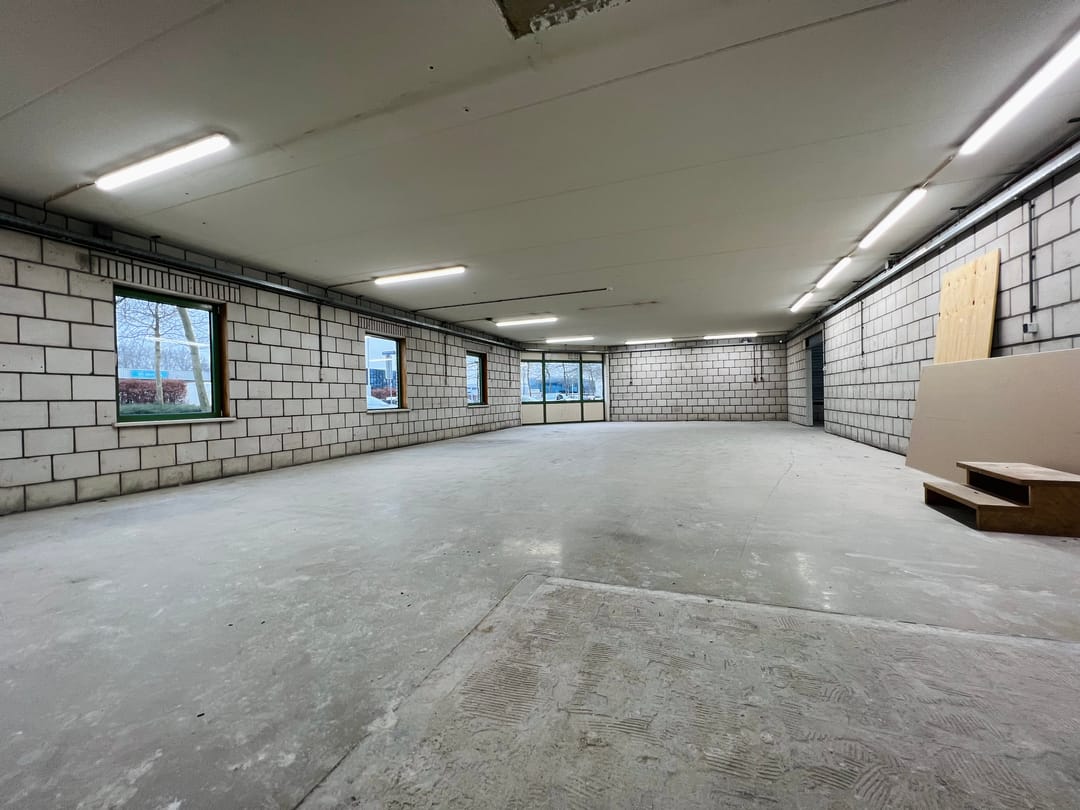 - Lichtstraten, overheaddeuren, betonvloer, heater, toilet, pantry, airconditioning, inbouwarmaturen en te openen ramen